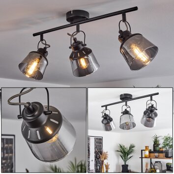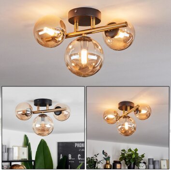 Gastor Plafondlamp - Glas Amber, Duidelijk, Zwart, 3-lichts