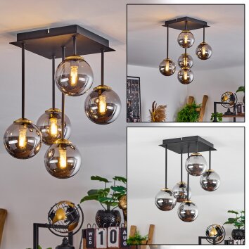 Gastor Plafondlamp, Kogellampje Amber, Duidelijk, Rookkleurig, 9-lichts