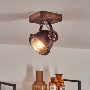 Herford Plafondlamp Hout donker, Roest, 1-licht