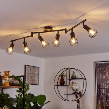 Gesteira Plafondlamp, Plafondspot Natuurlijke kleuren, Zwart, 6-lichts