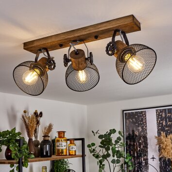 Alsen Plafondlamp Hout licht, Zwart, 3-lichts