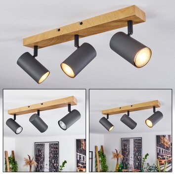 Herford Plafondlamp Grijs, Hout donker, 3-lichts