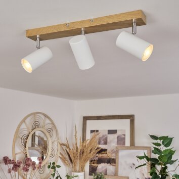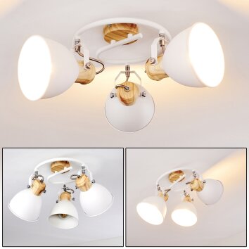 Gesteira Plafondlamp, Plafondspot Hout licht, Wit, 3-lichts