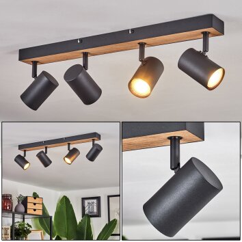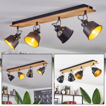 Javel Plafondlamp houtlook, Zwart, 4-lichts