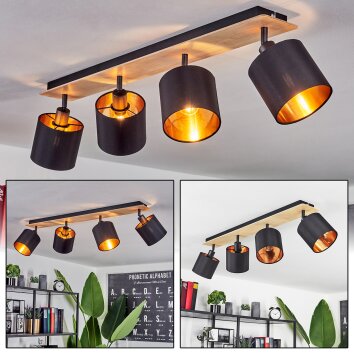 Alsen Plafondlamp Hout licht, Zwart, 4-lichts