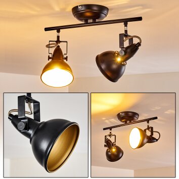 Alsen Plafondlamp Zwart-Goud, 2-lichts