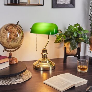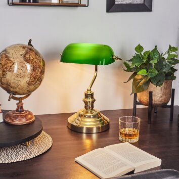 Bankierslamp Goud, Groen, Messing, 1-licht
