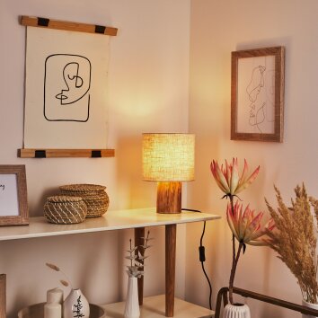 Lahnus Tafellamp Bruin, houtlook, Wit, 1-licht