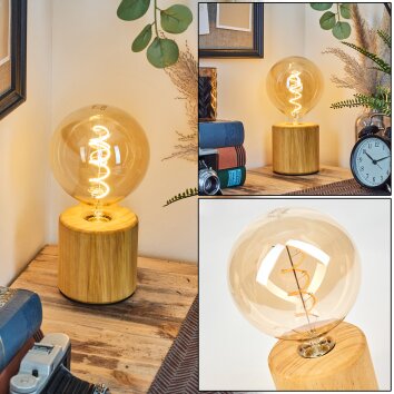Stampa Tafellamp Bruin, houtlook, 1-licht