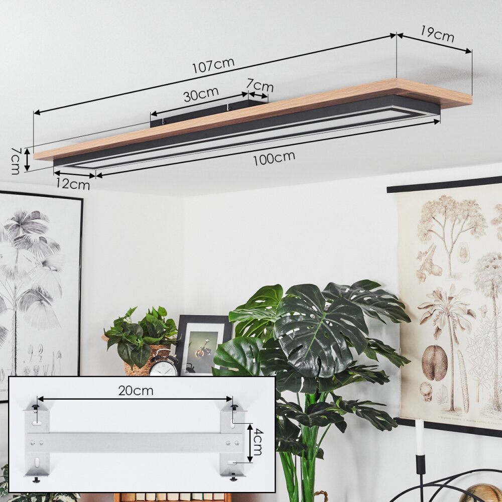 Blandford Plafondpaneel LED Bruin, houtlook, Zwart, 2-lichts, Afstandsbediening