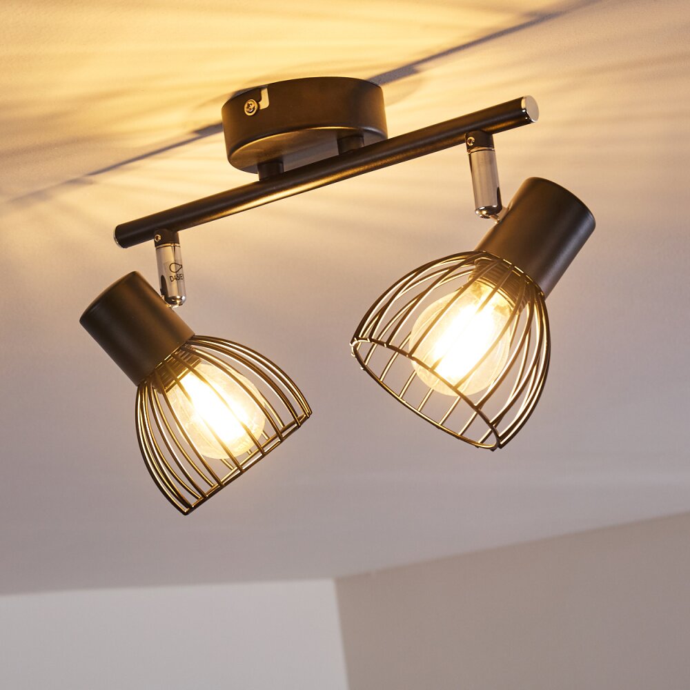 Bolderslev Plafondlamp Chroom, Zwart, 2-lichts