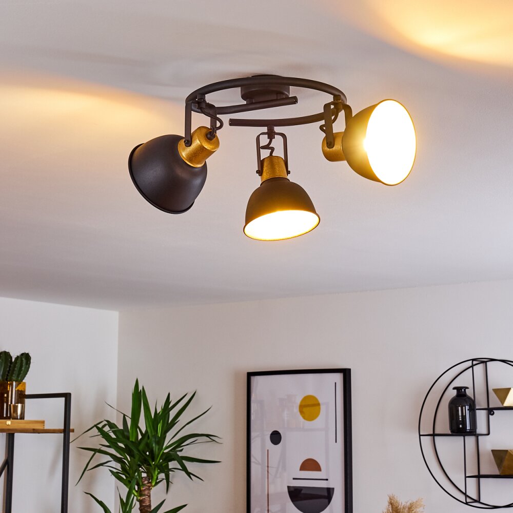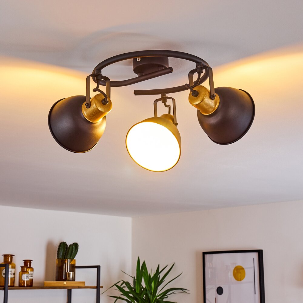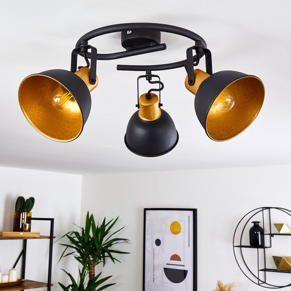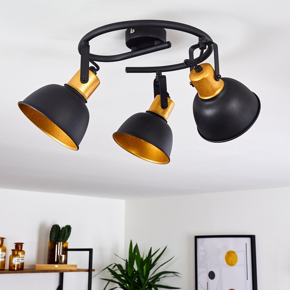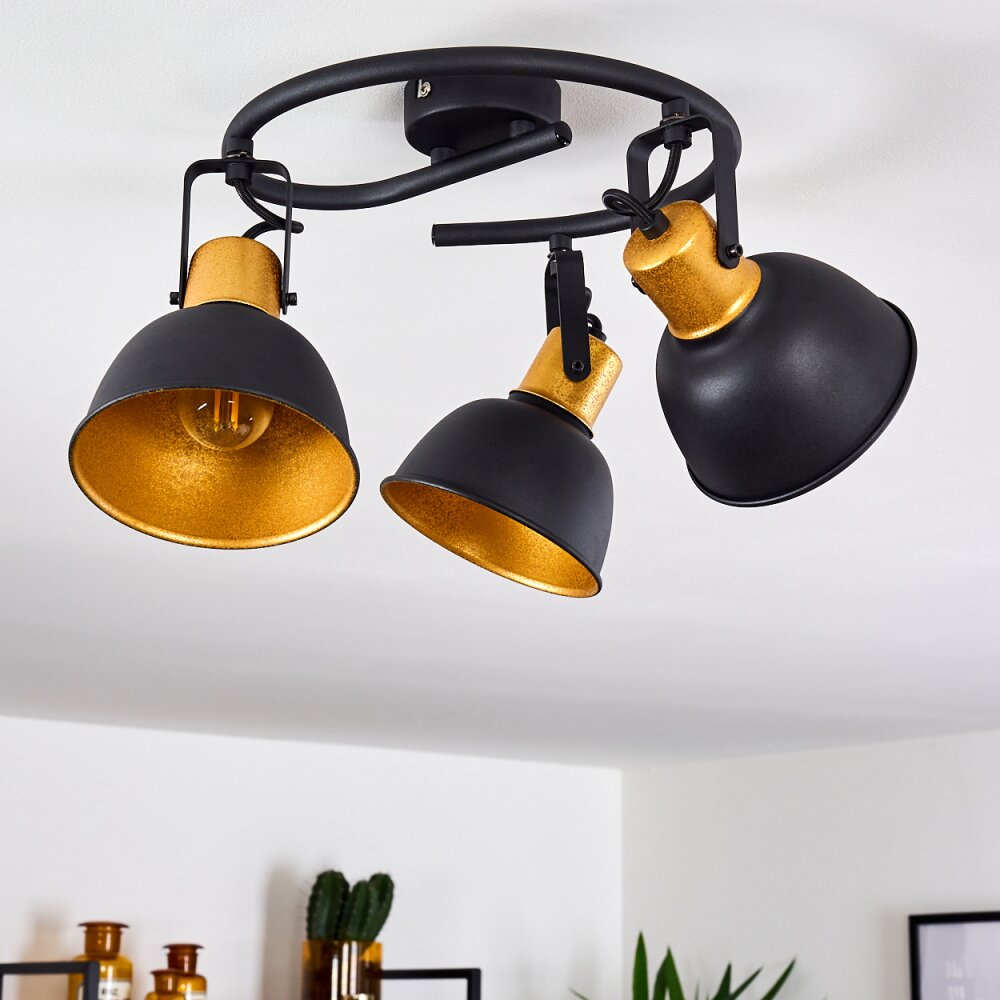 Borik Plafondlamp Zwart-Goud, 3-lichts