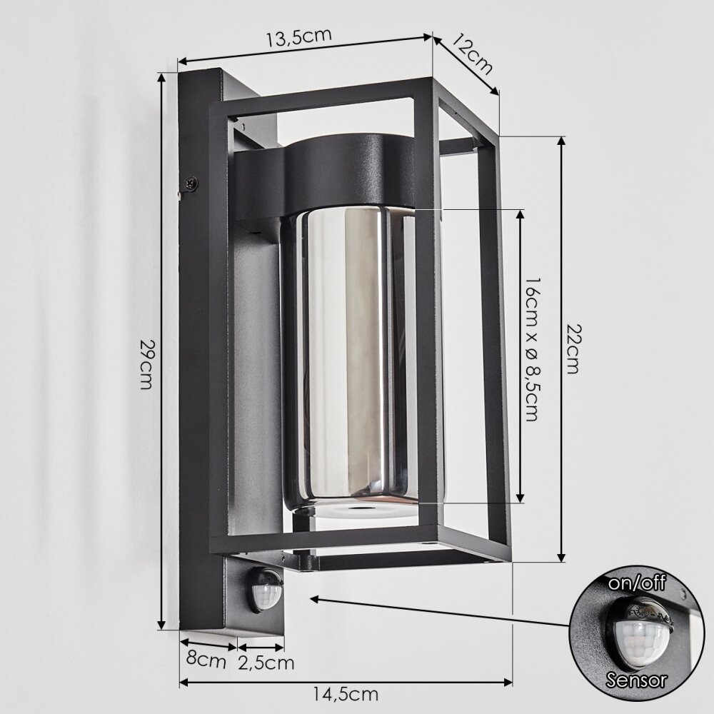 Boucinho Wandlamp voor buiten Zwart, 1-licht, Bewegingsmelder