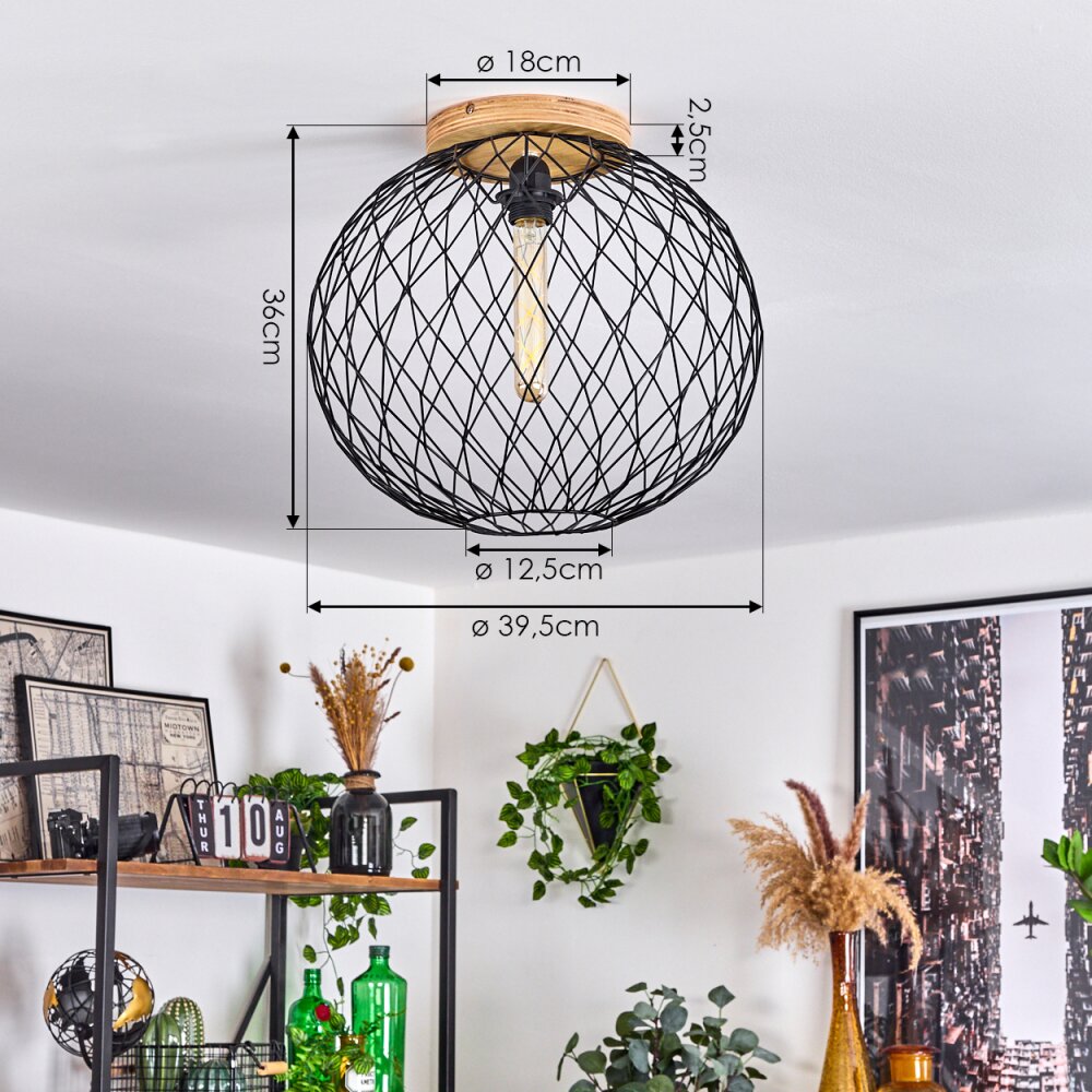 Podre Plafondlamp Hout licht, Zwart, 3-lichts