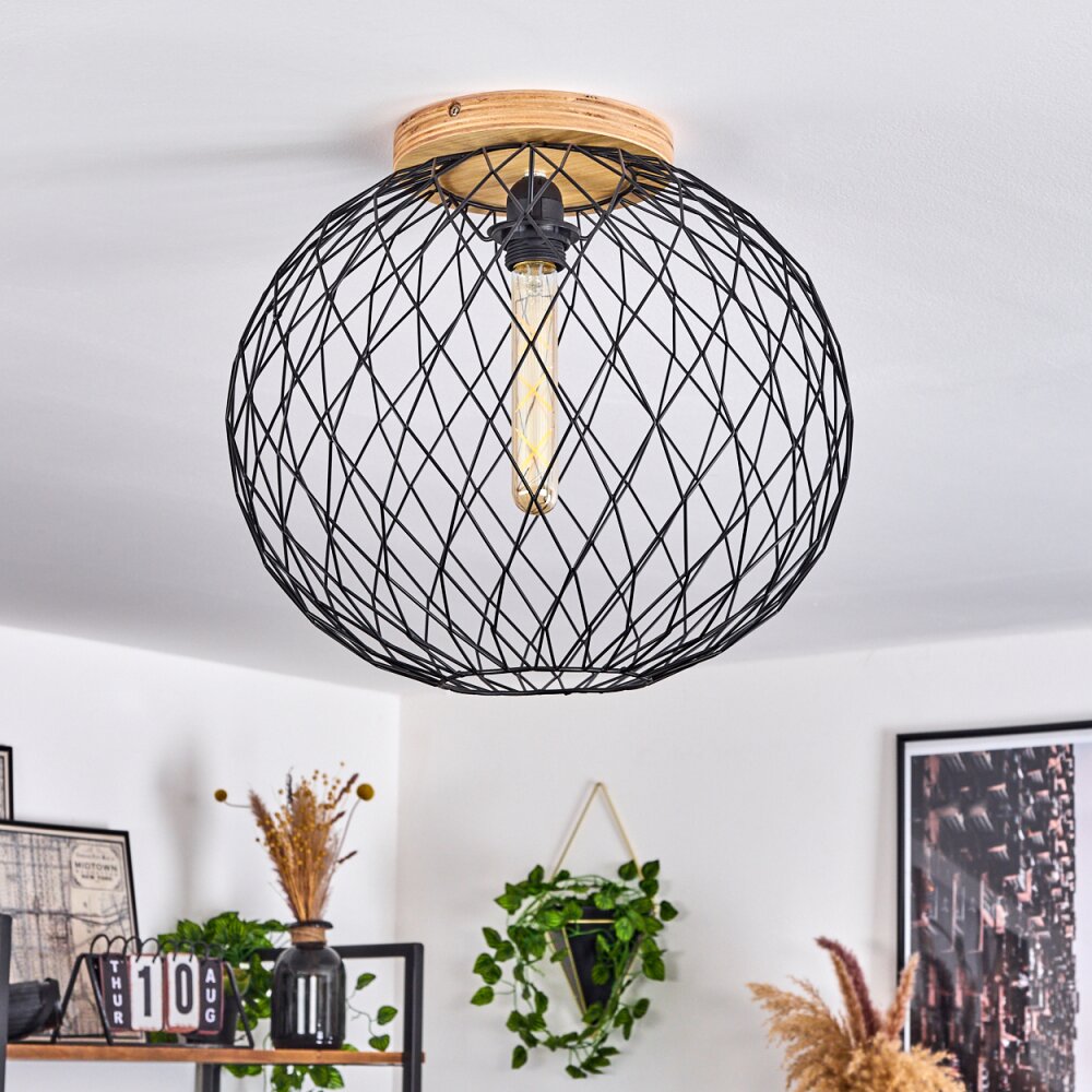 Roxa Plafondlamp Hout licht, Zwart, 3-lichts