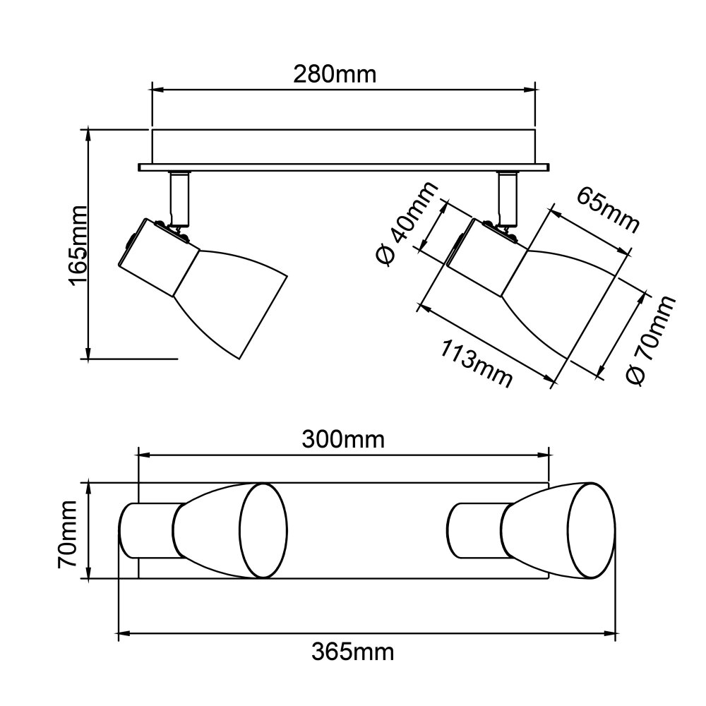 Dalan Plafondlamp, Plafondspot LED Natuurlijke kleuren, Zwart, 2-lichts