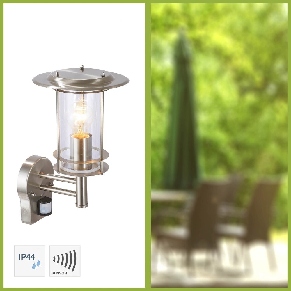 Brilliant York Buiten muurverlichting roestvrij staal, 1-licht, Bewegingsmelder