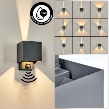 Almodofa Wandlamp voor buiten, Licht omhoog & omlaag Antraciet, 1-licht, Bewegingsmelder