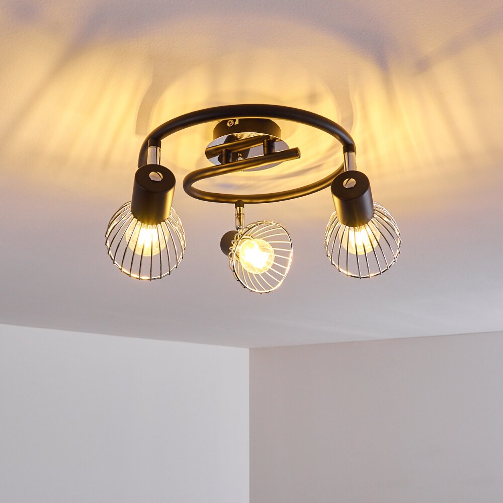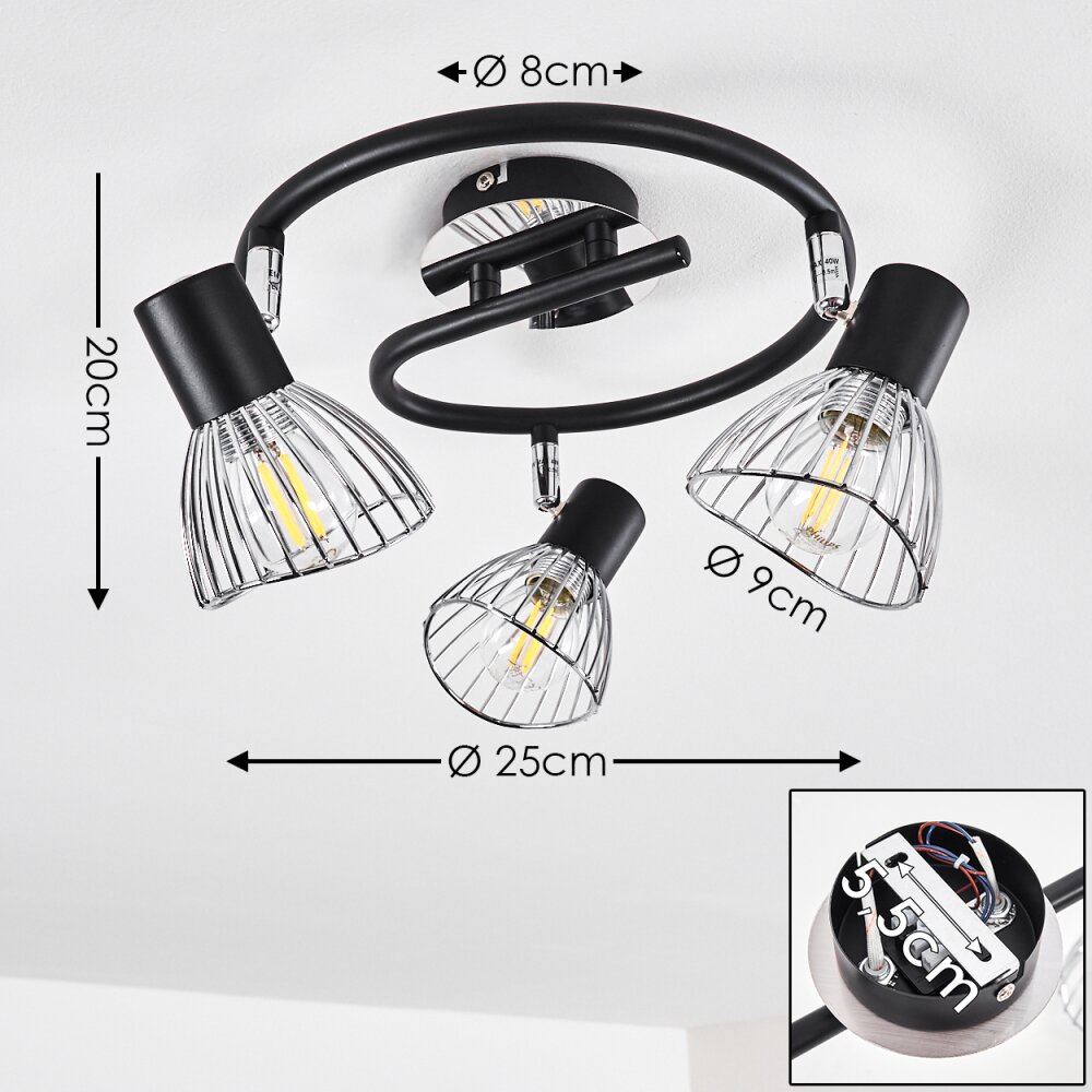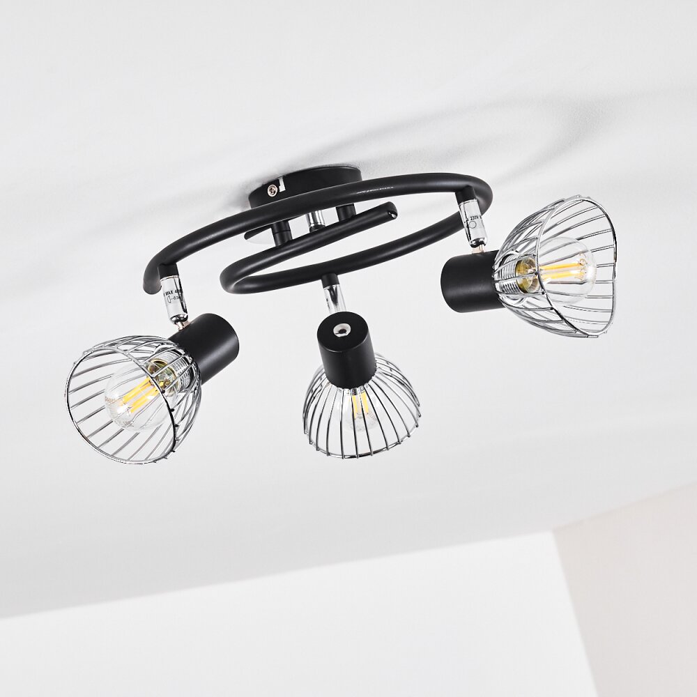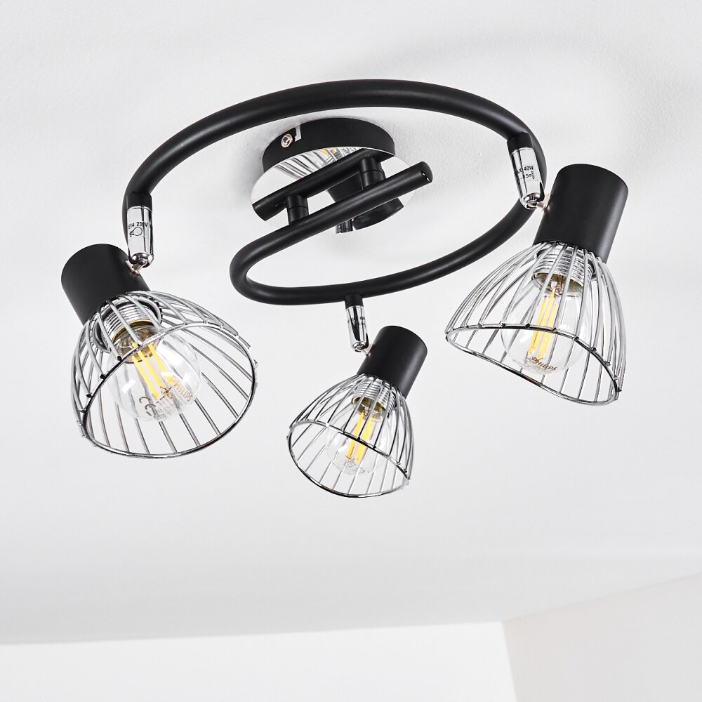 Burkal Plafondlamp Chroom, Zwart, 3-lichts