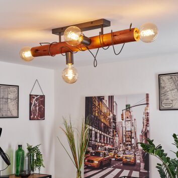 Podre Hanger Hout licht, Zwart, 4-lichts