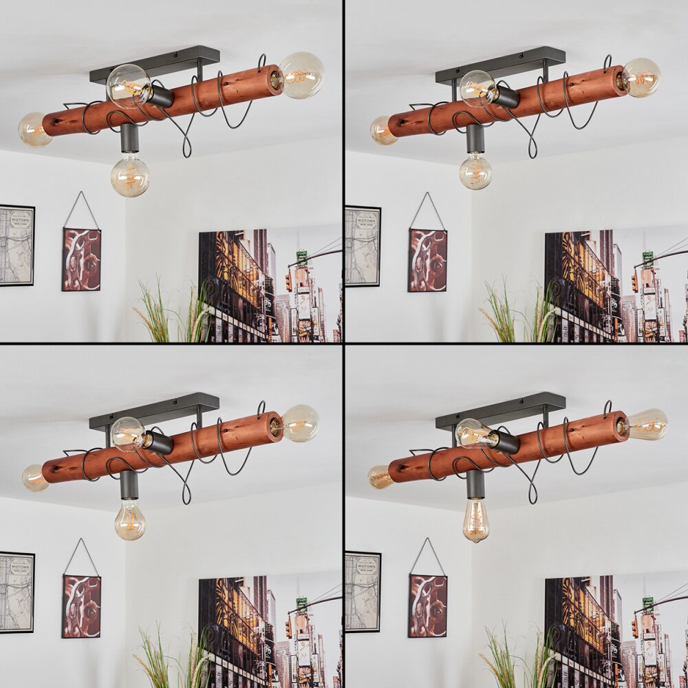 Vouhet Plafondlamp Bruin, houtlook, Zwart, 3-lichts
