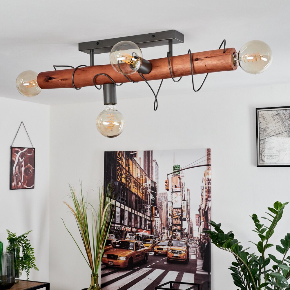 Roxa Plafondlamp Hout licht, Zwart, 3-lichts