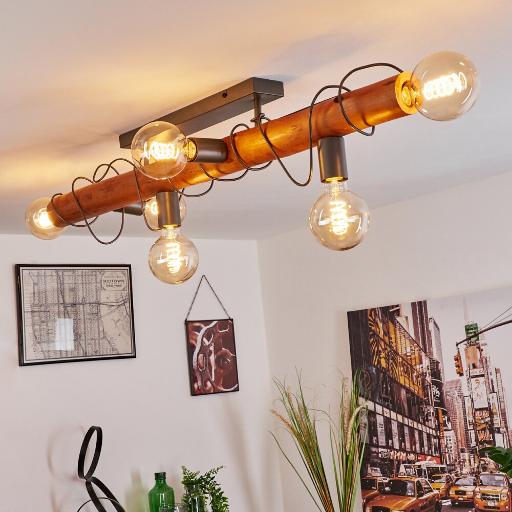 Roxa Plafondlamp Hout licht, Zwart, 3-lichts