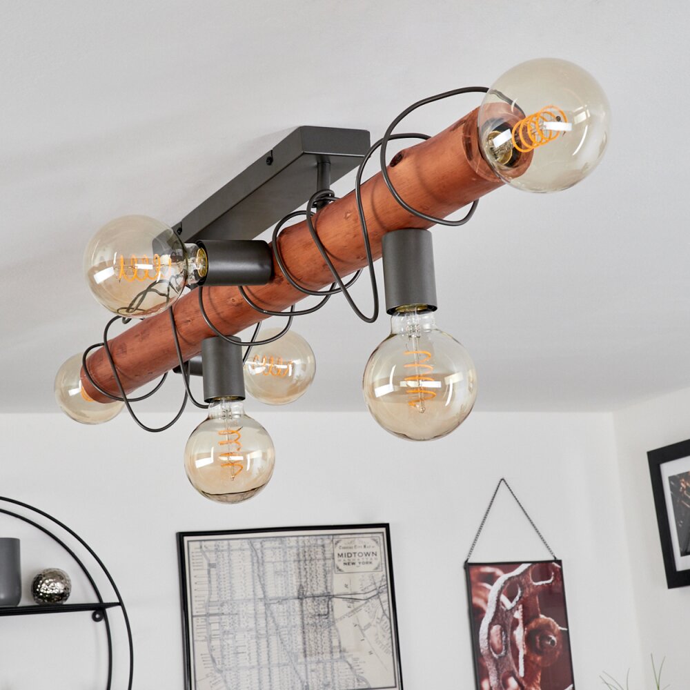 Vouhet Plafondlamp Bruin, houtlook, Zwart, 3-lichts