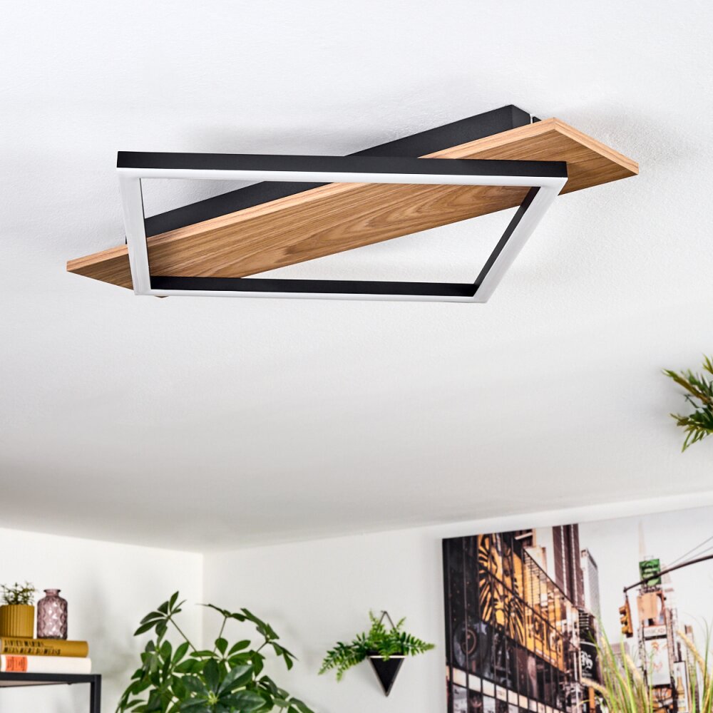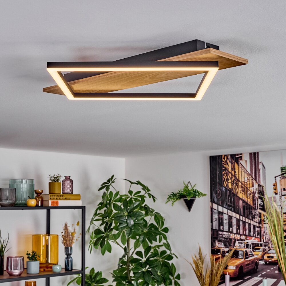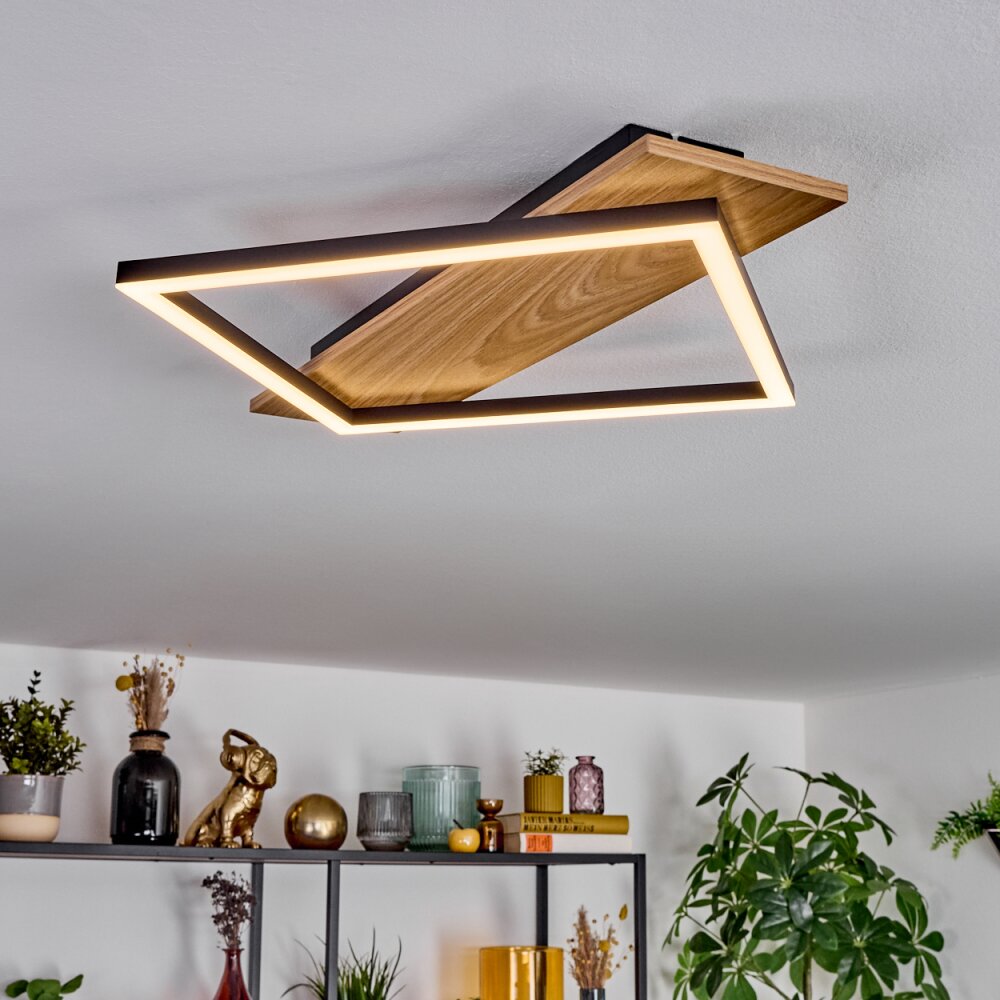 Cabanas Plafondlamp LED houtlook, Zwart, 1-licht
