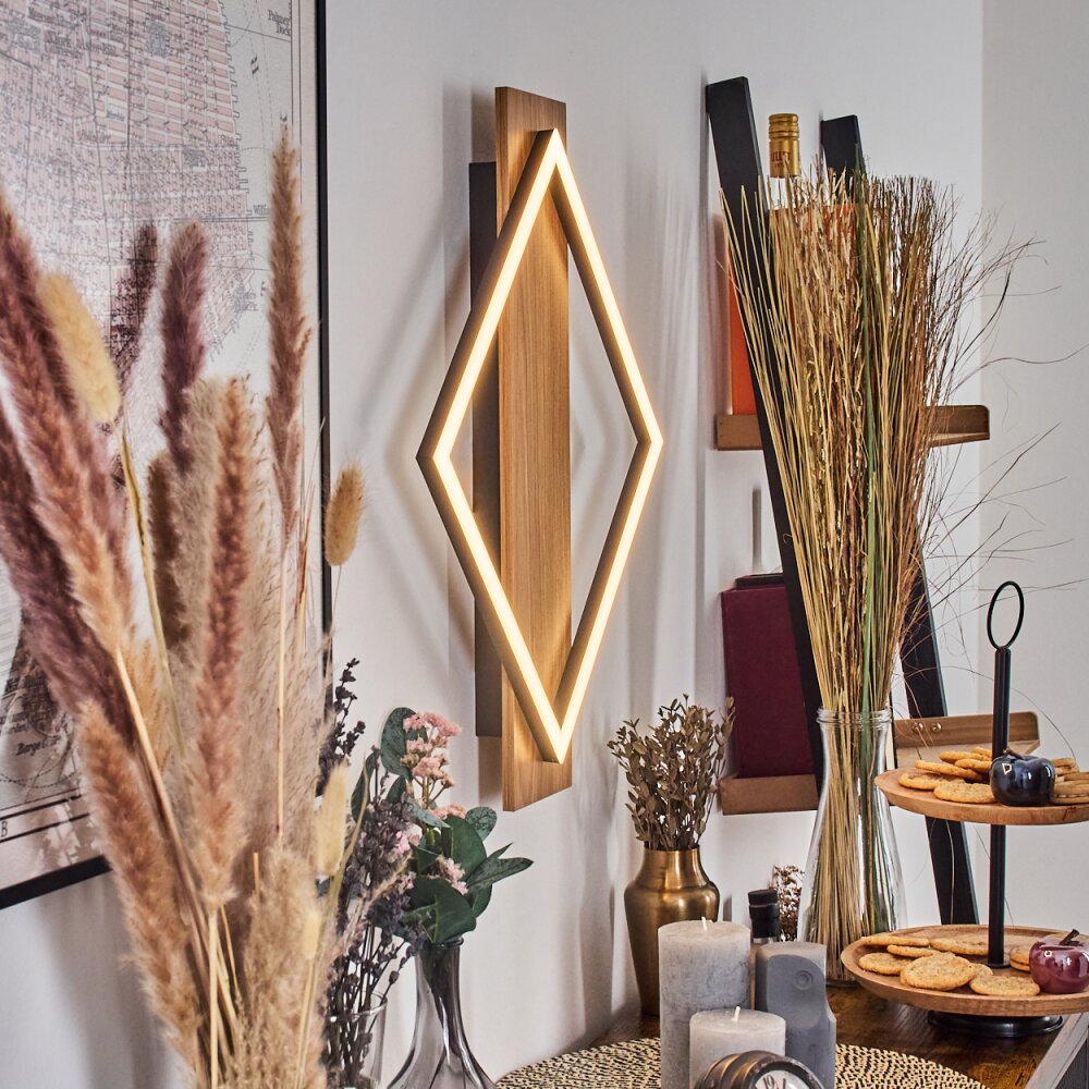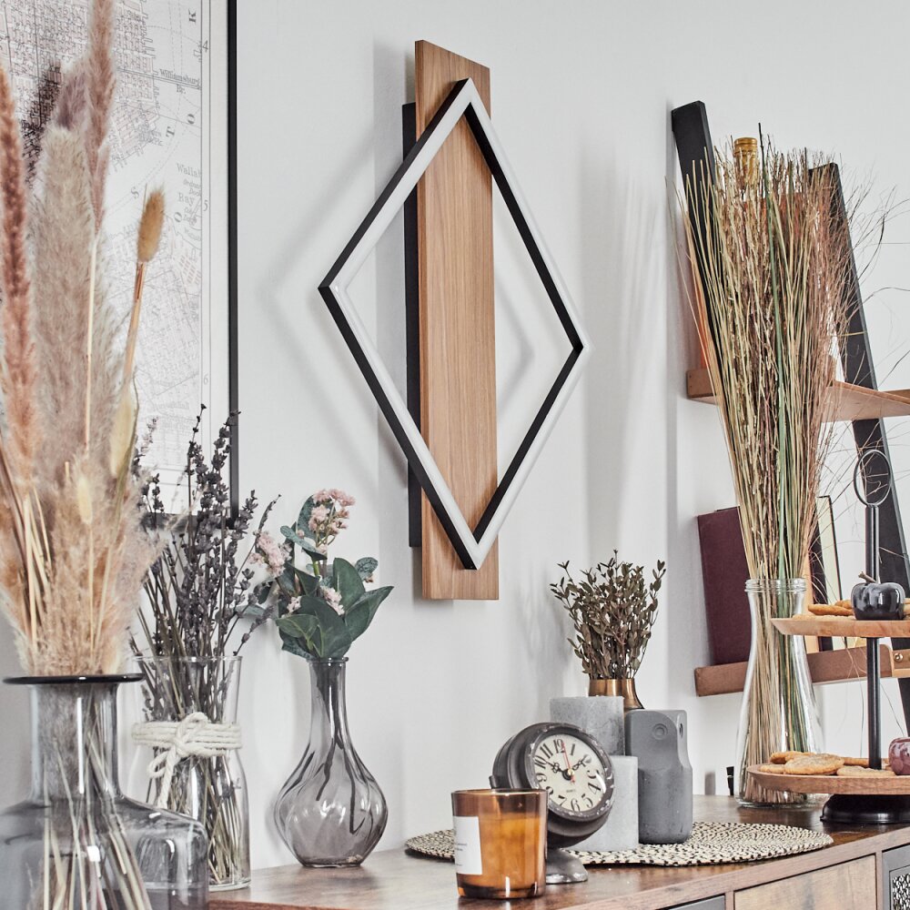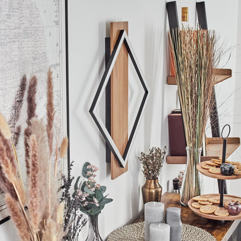 Cabanas Wandlamp LED houtlook, Zwart, 1-licht