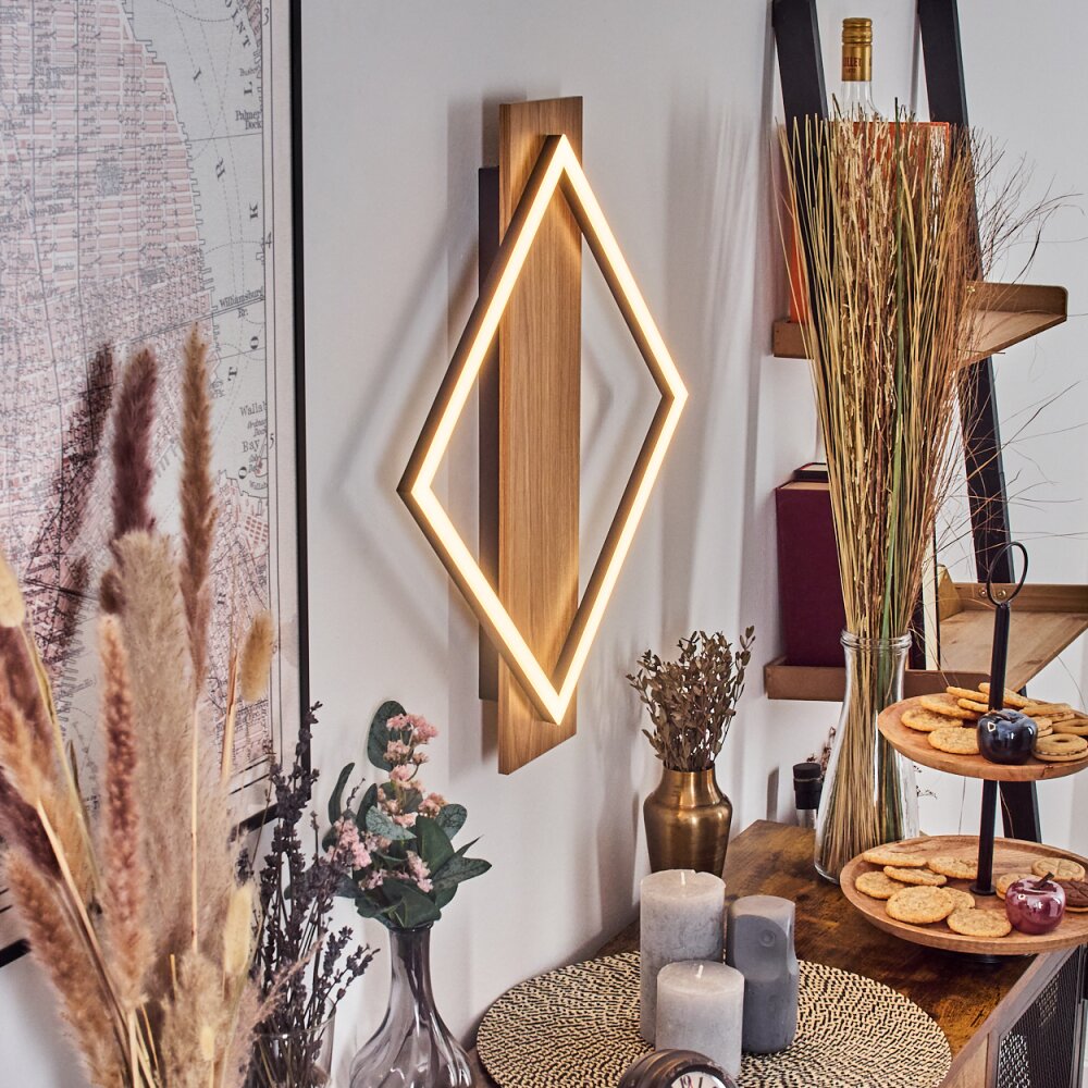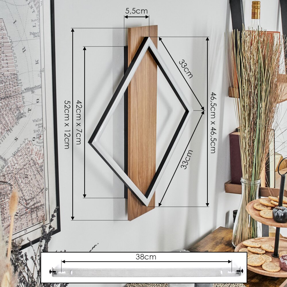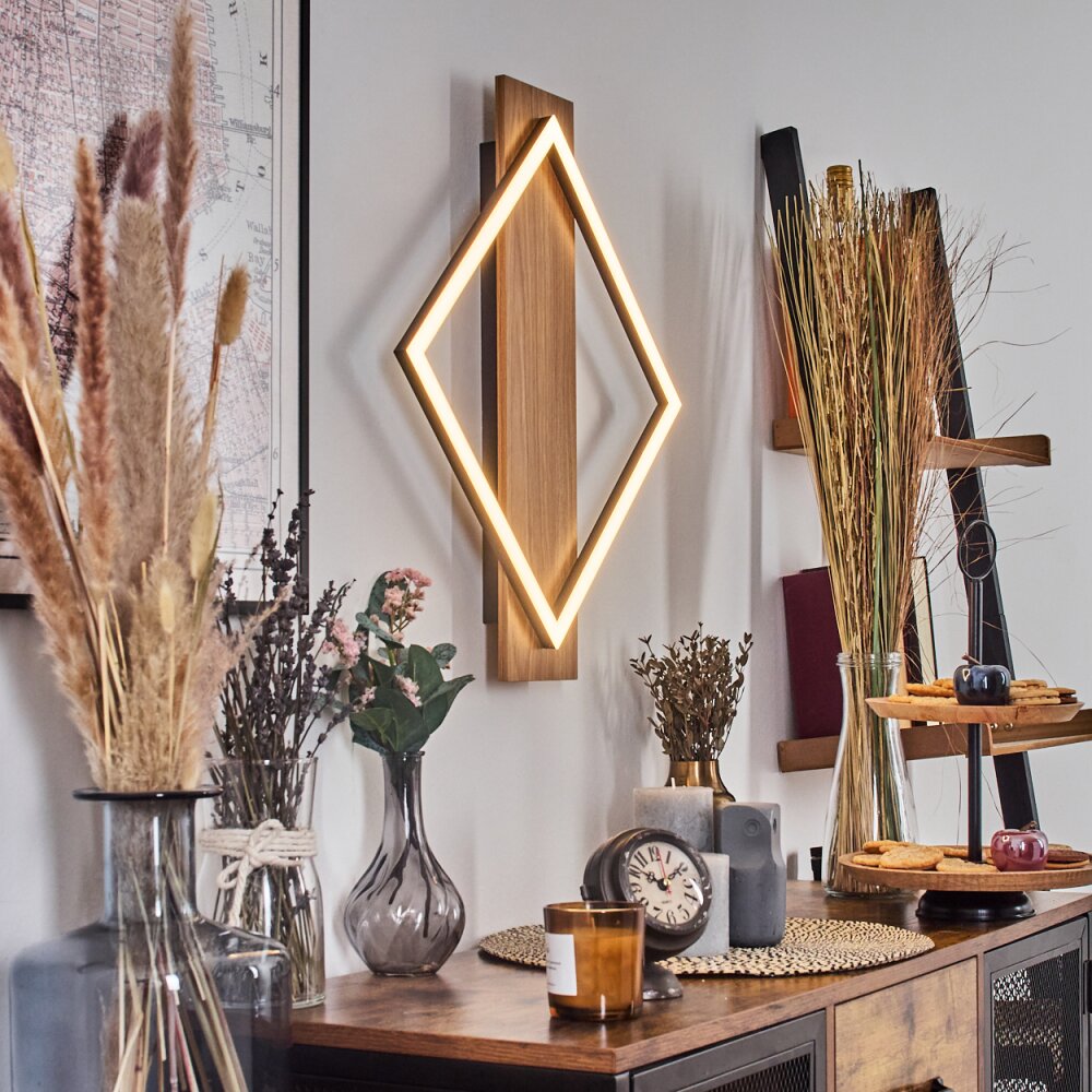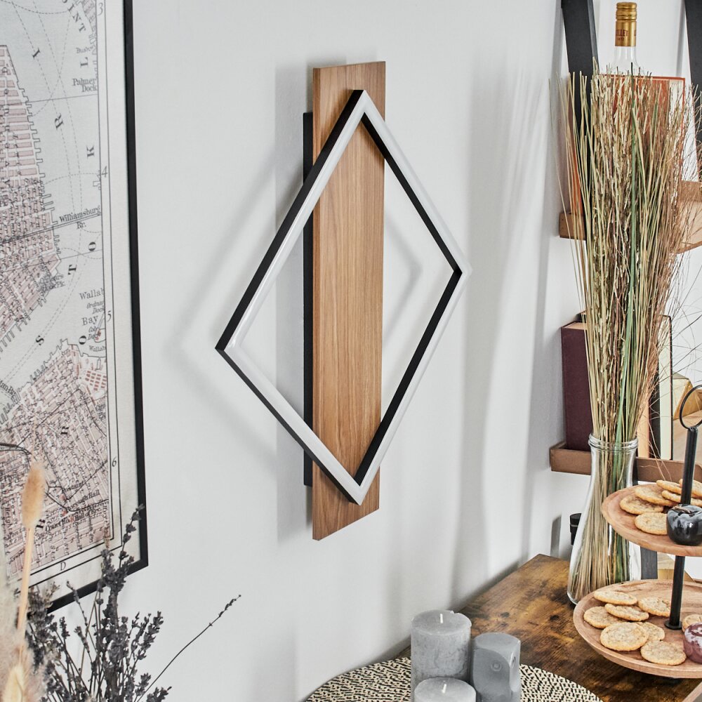 Cabanas Wandlamp LED houtlook, Zwart, 1-licht