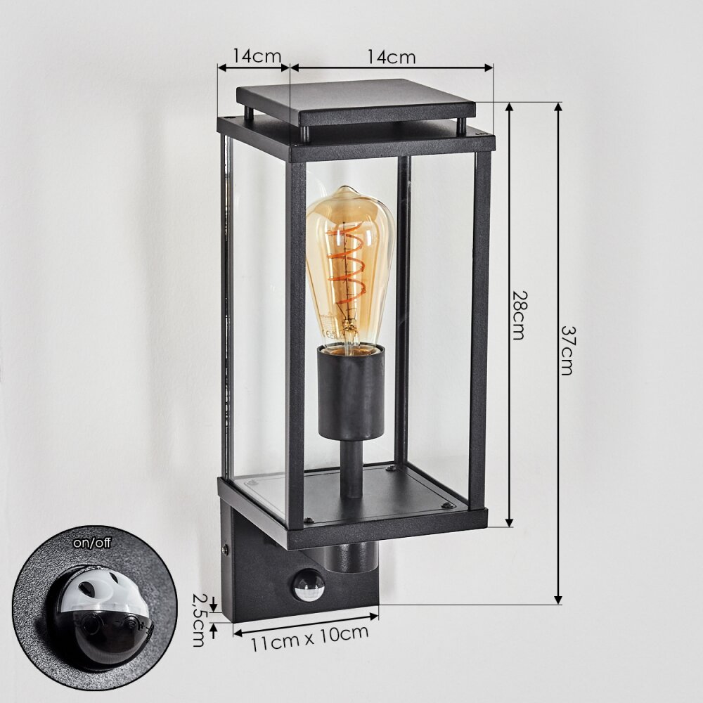 Monfanim Wandlamp voor buiten, Wandlamp Zwart, 1-licht, Bewegingsmelder