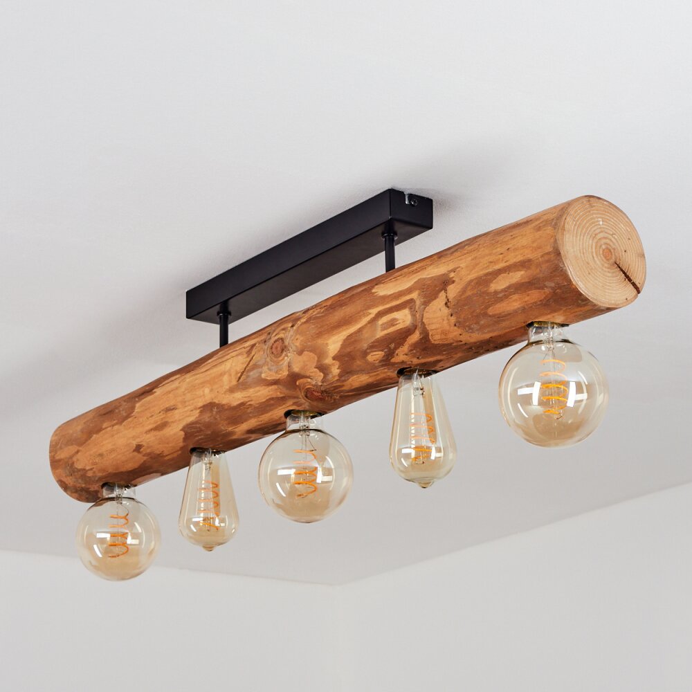 Roxa Plafondlamp Hout licht, Zwart, 3-lichts