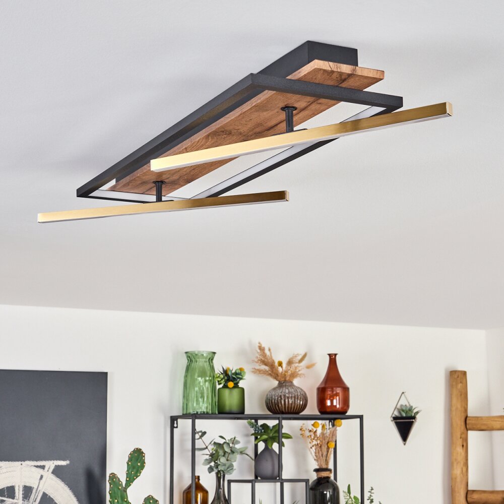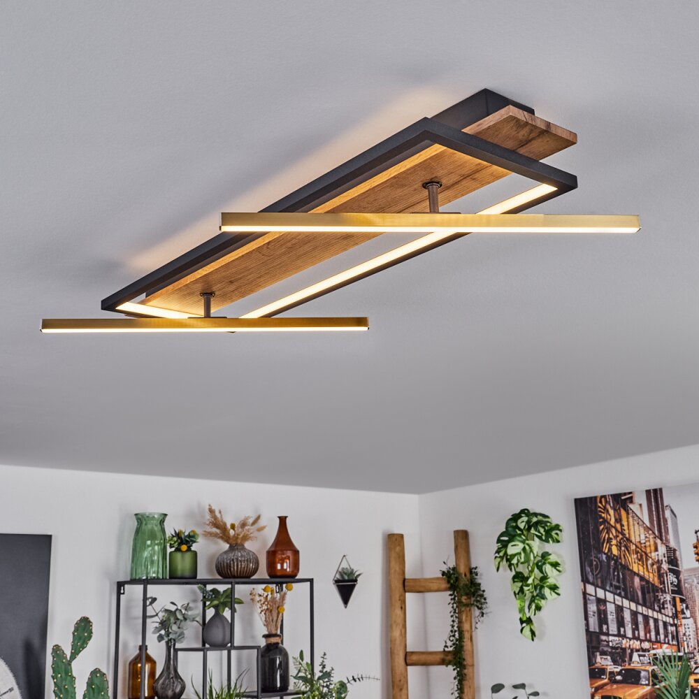 Cascada Plafondlamp LED Messing, Natuurlijke kleuren, Zwart, 1-licht