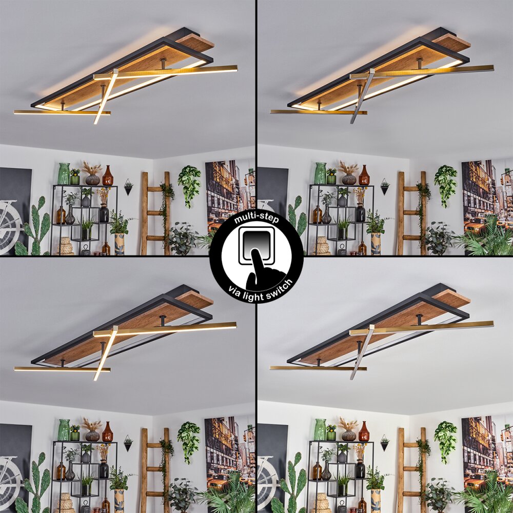 Cascada Plafondlamp LED Messing, Natuurlijke kleuren, Zwart, 1-licht