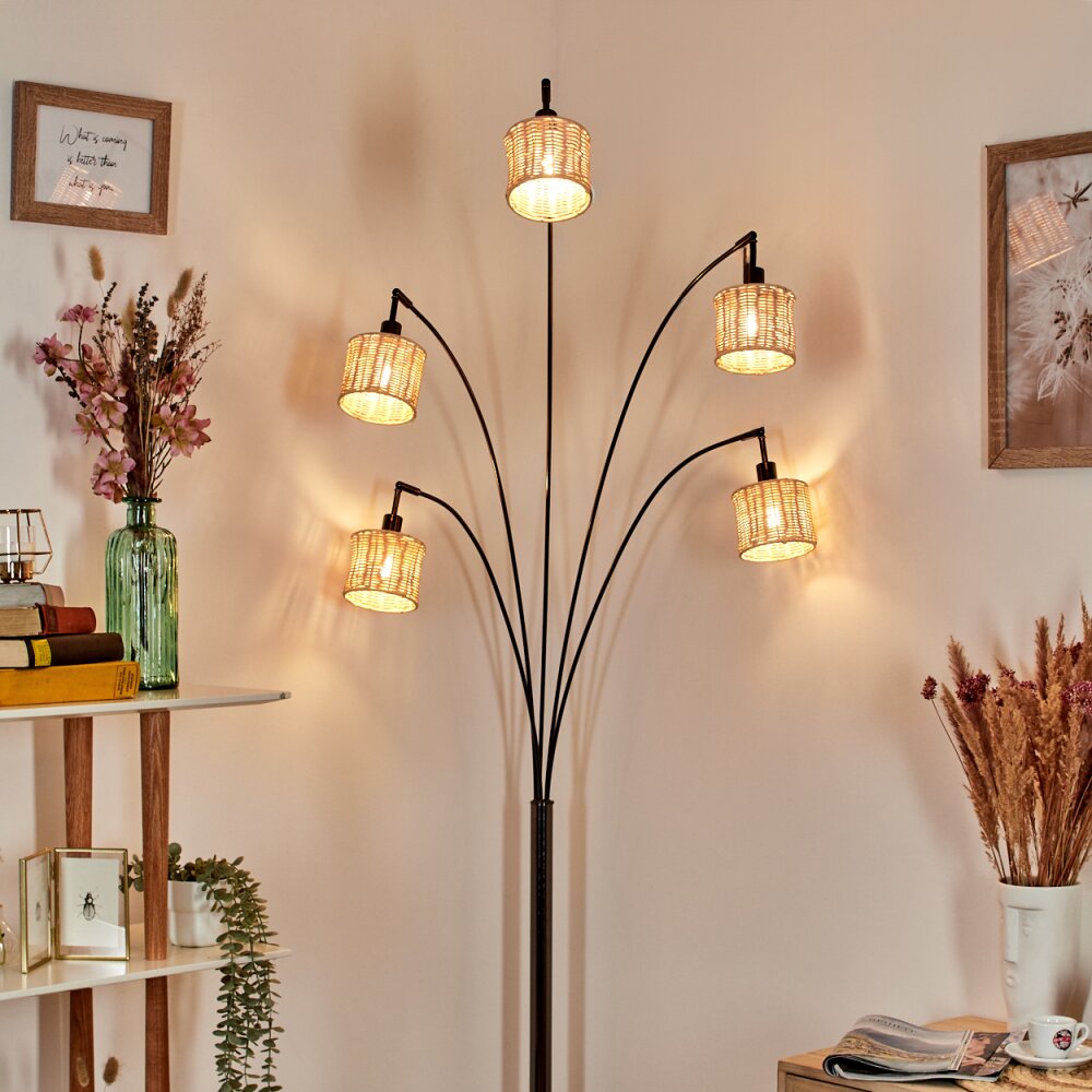 Cavaca Staande lamp Chroom, Zwart, 5-lichts