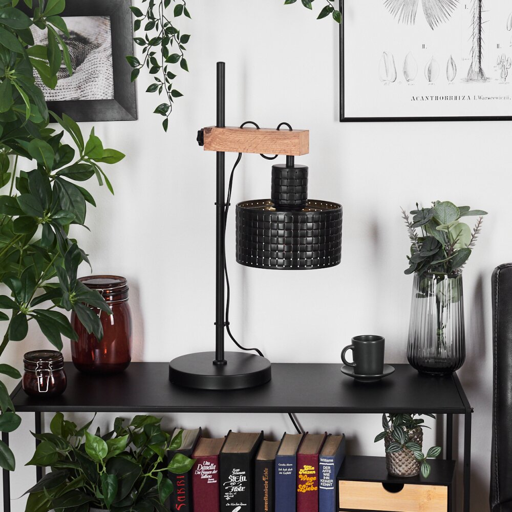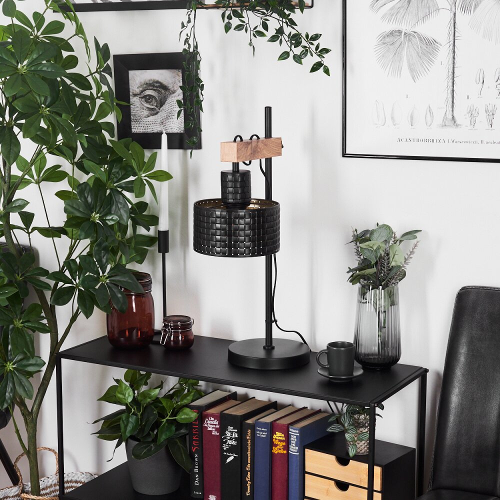 Chabian Tafellamp Bruin, houtlook, Zwart, 1-licht