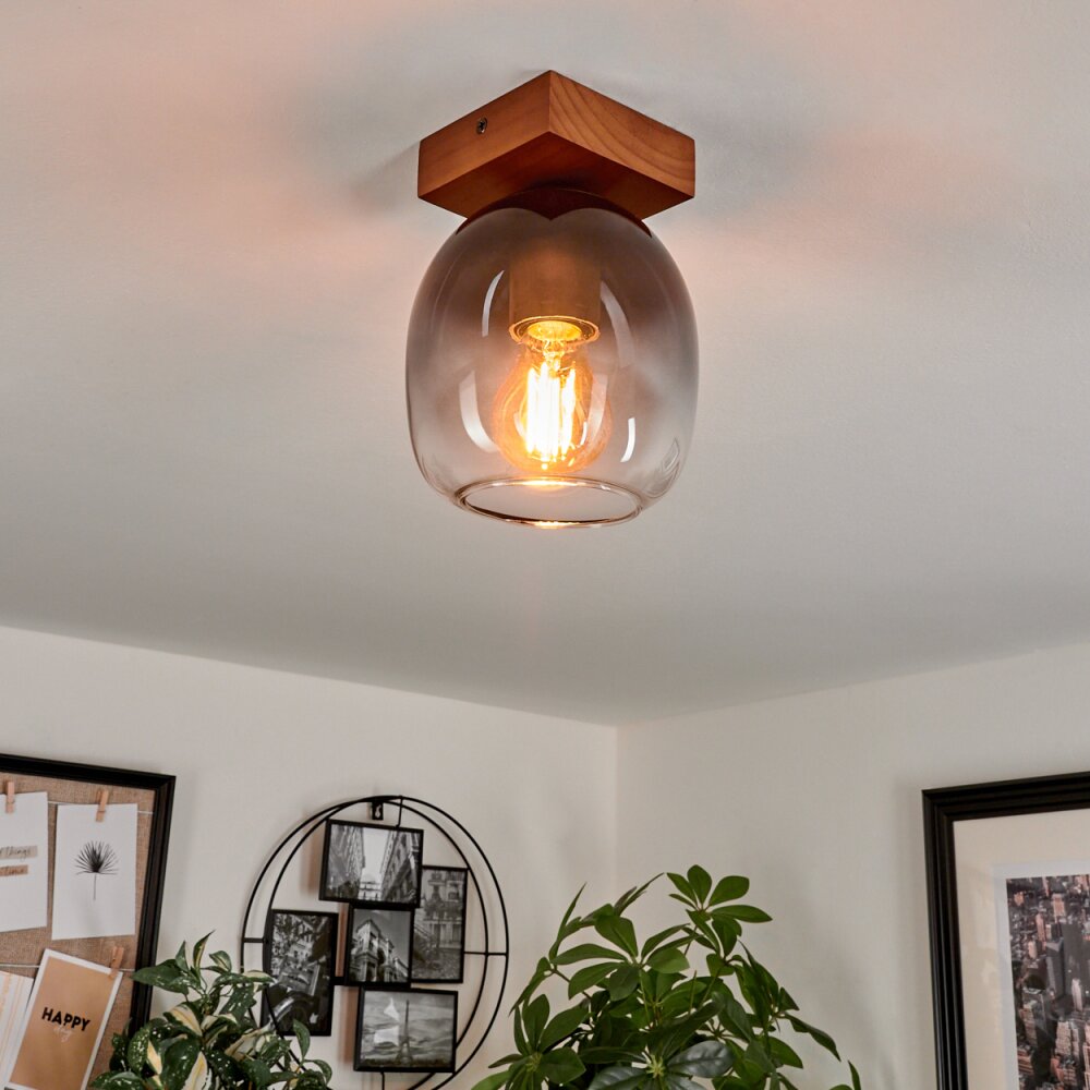 Chauplane Plafondlamp Hout donker, Zwart, 1-licht