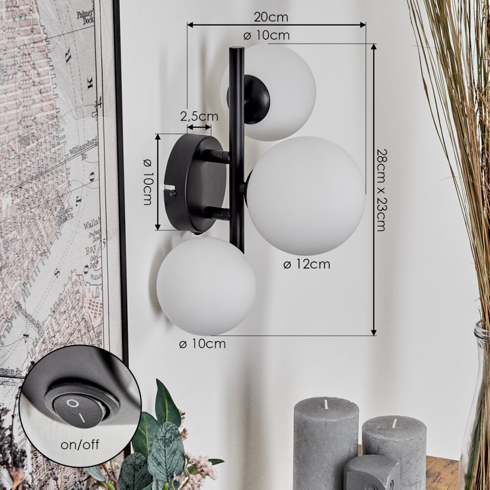 Chehalis Muurlamp - Glas 10 cm, 12 cm Wit, 3-lichts