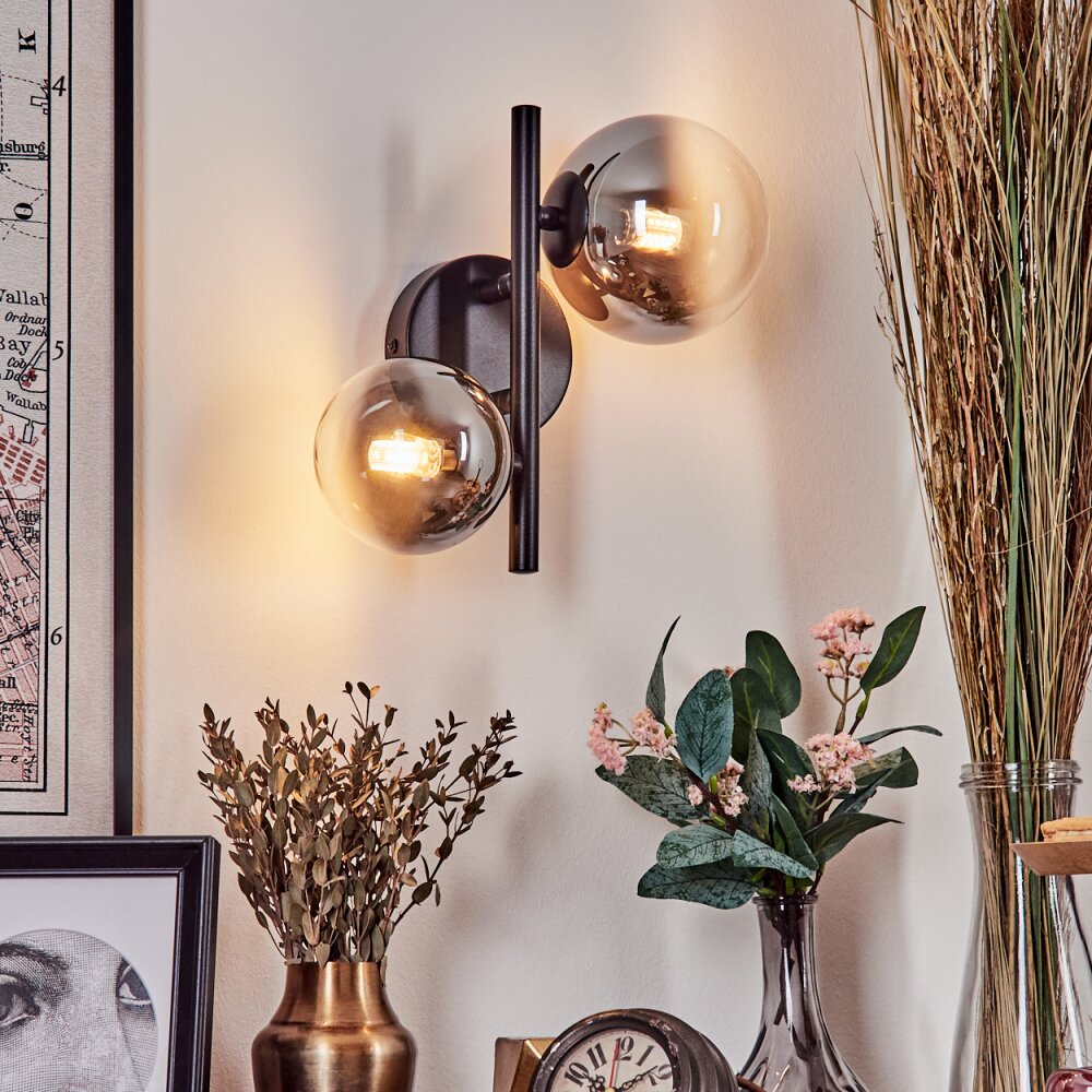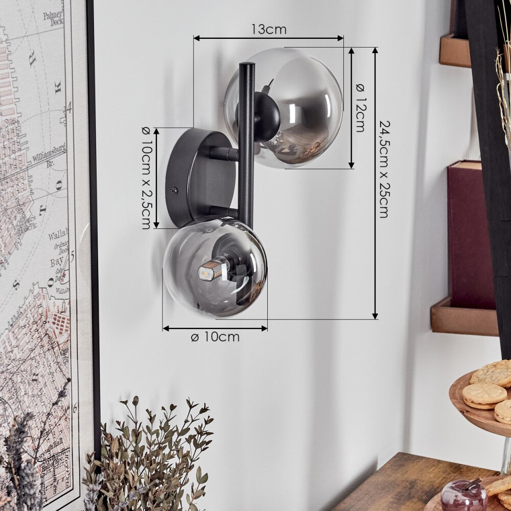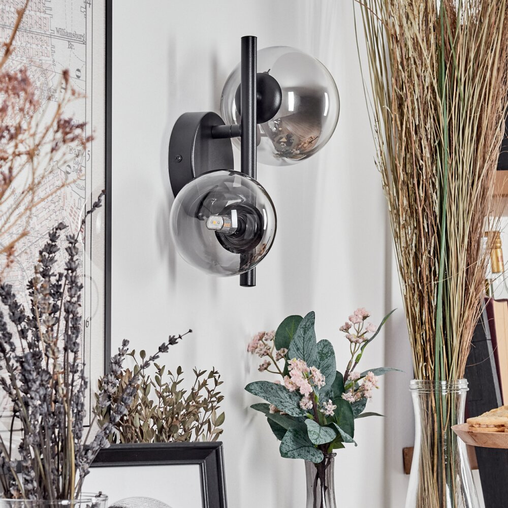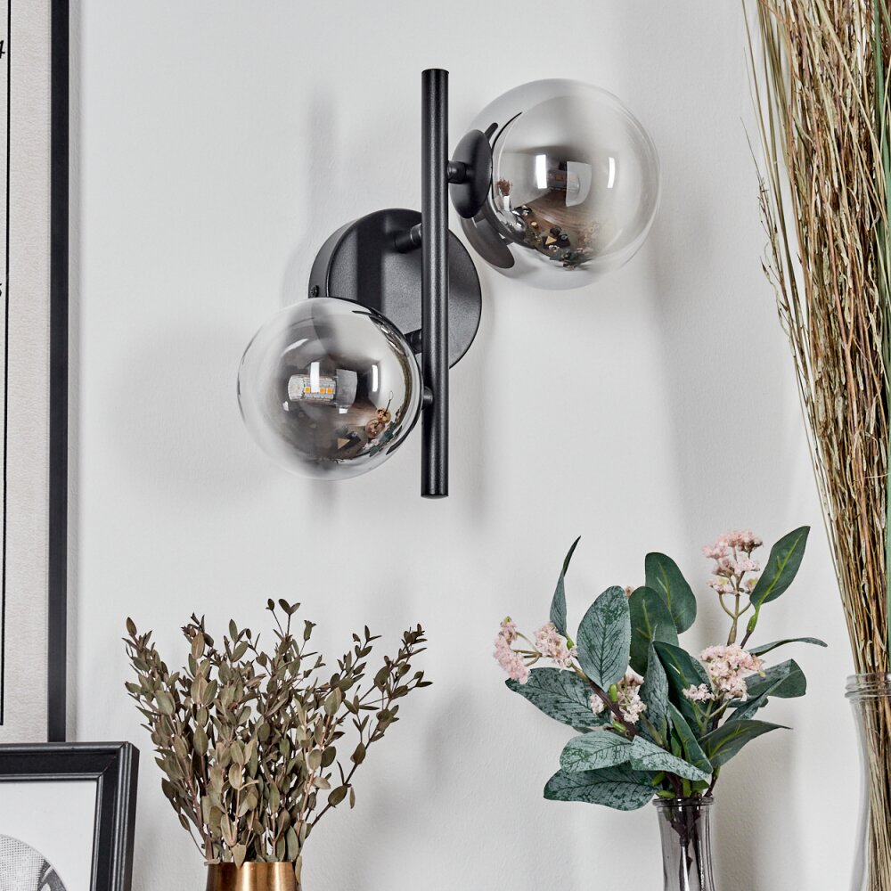 Chehalis Muurlamp - Glas 10 cm, 12 cm Zwart, 2-lichts