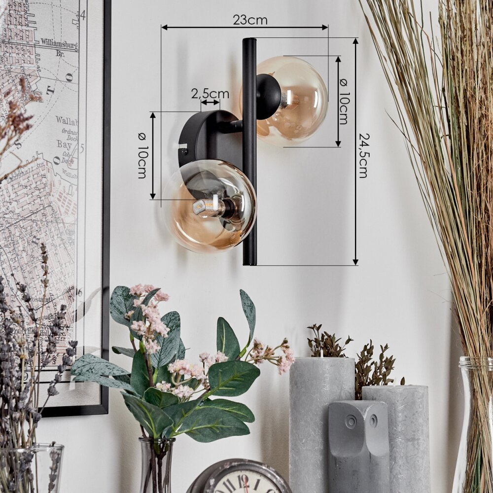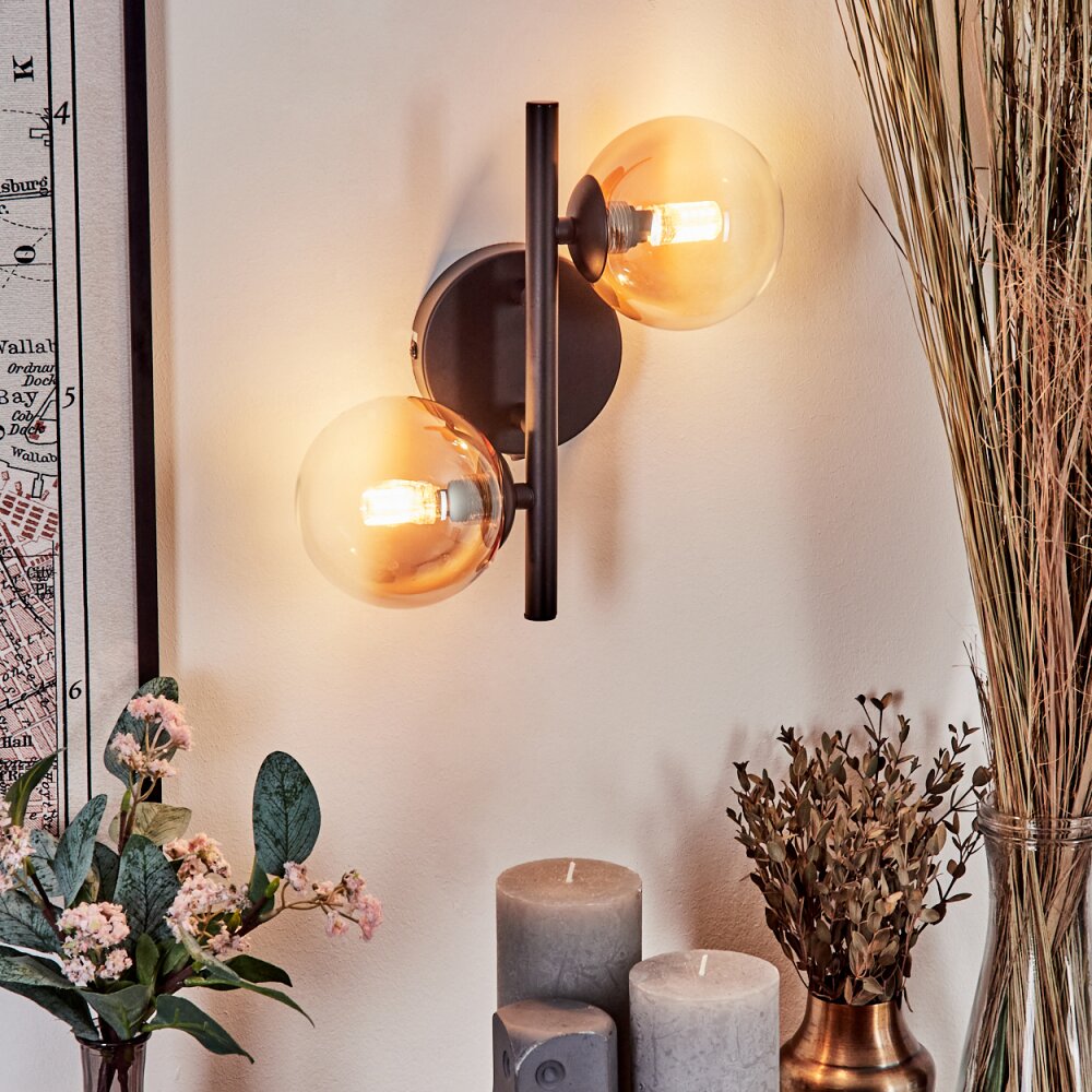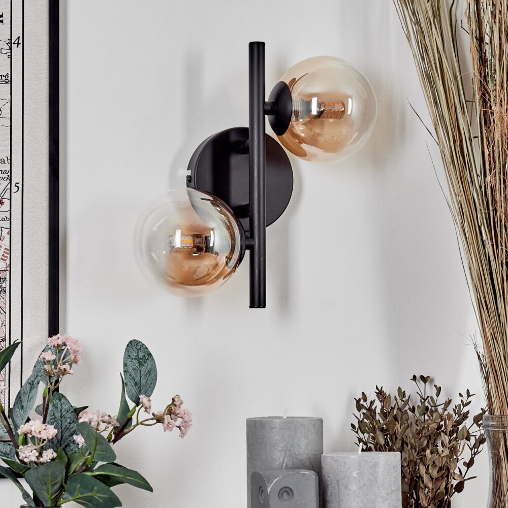 Chehalis Muurlamp - Glas 10 cm Amber, Duidelijk, 2-lichts
