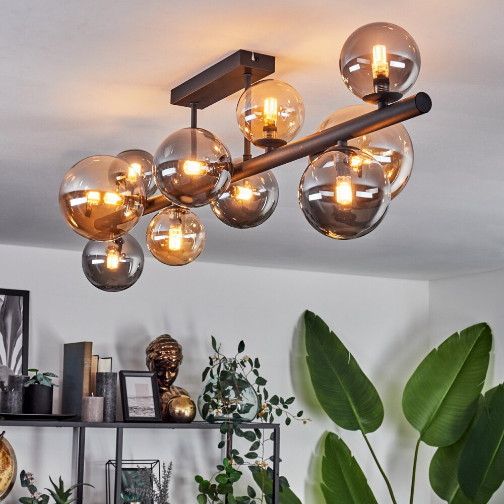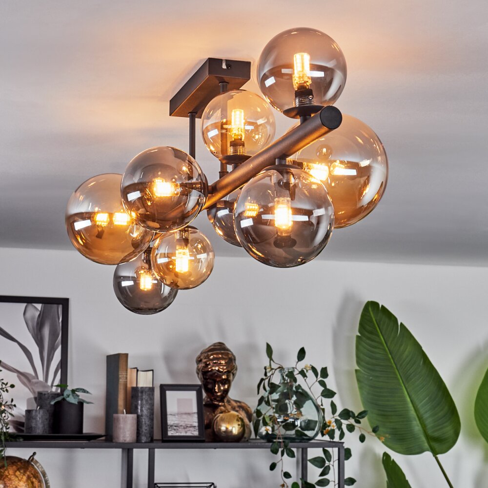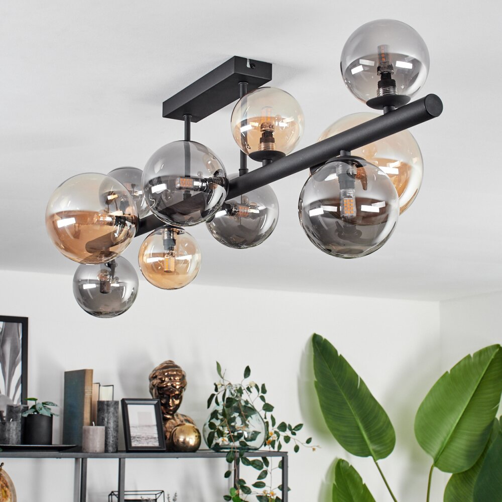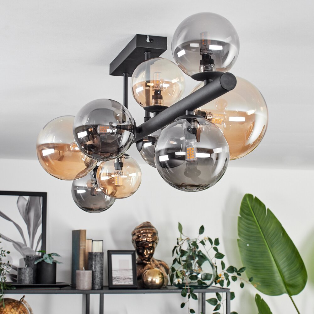 Chehalis Plafondlamp - Glas 10 cm, 12 cm, 15 cm Amber, Rookkleurig, 10-lichts