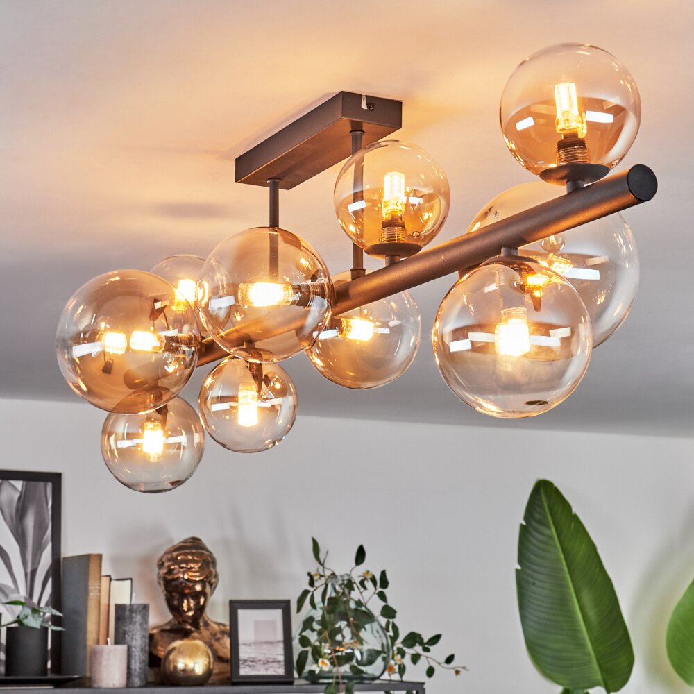 Chehalis Plafondlamp - Glas 10 cm, 12 cm, 15 cm Amber, Duidelijk, 10-lichts