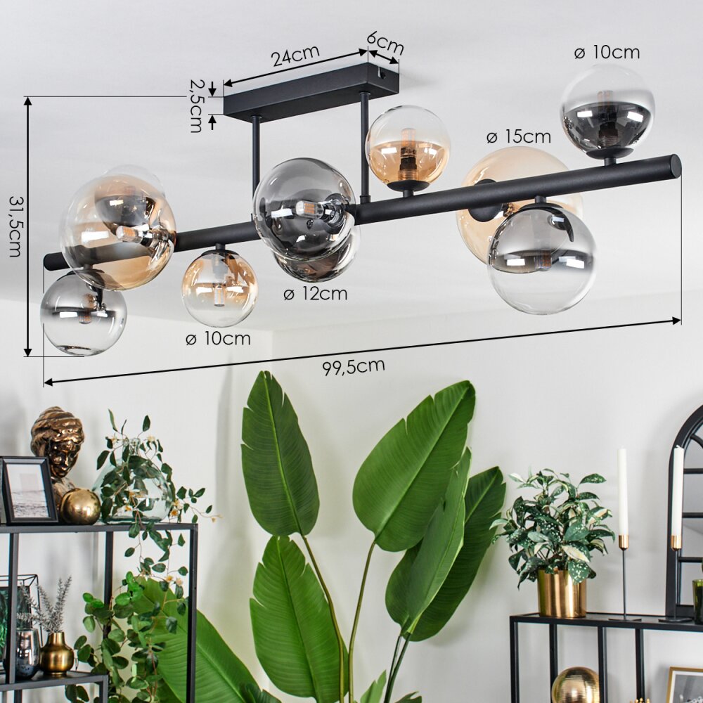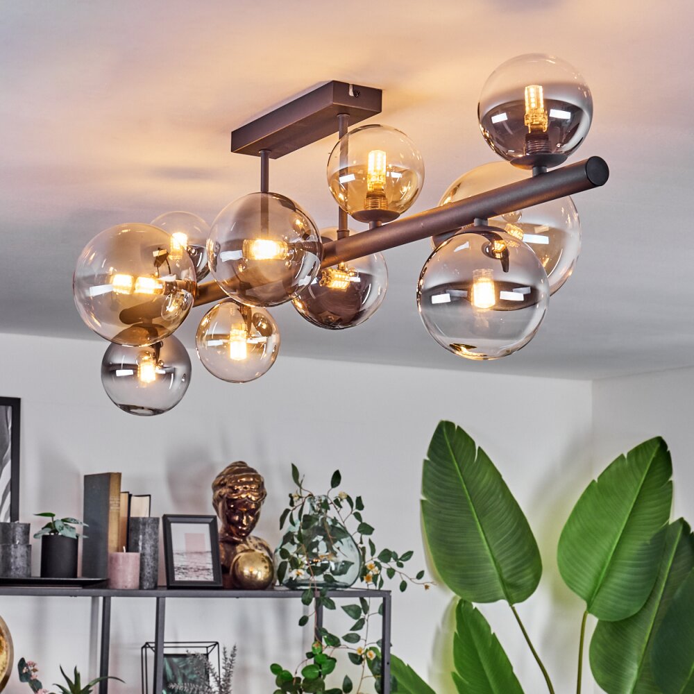 Chehalis Plafondlamp - Glas 10 cm, 12 cm, 15 cm Amber, Duidelijk, Rookkleurig, 10-lichts