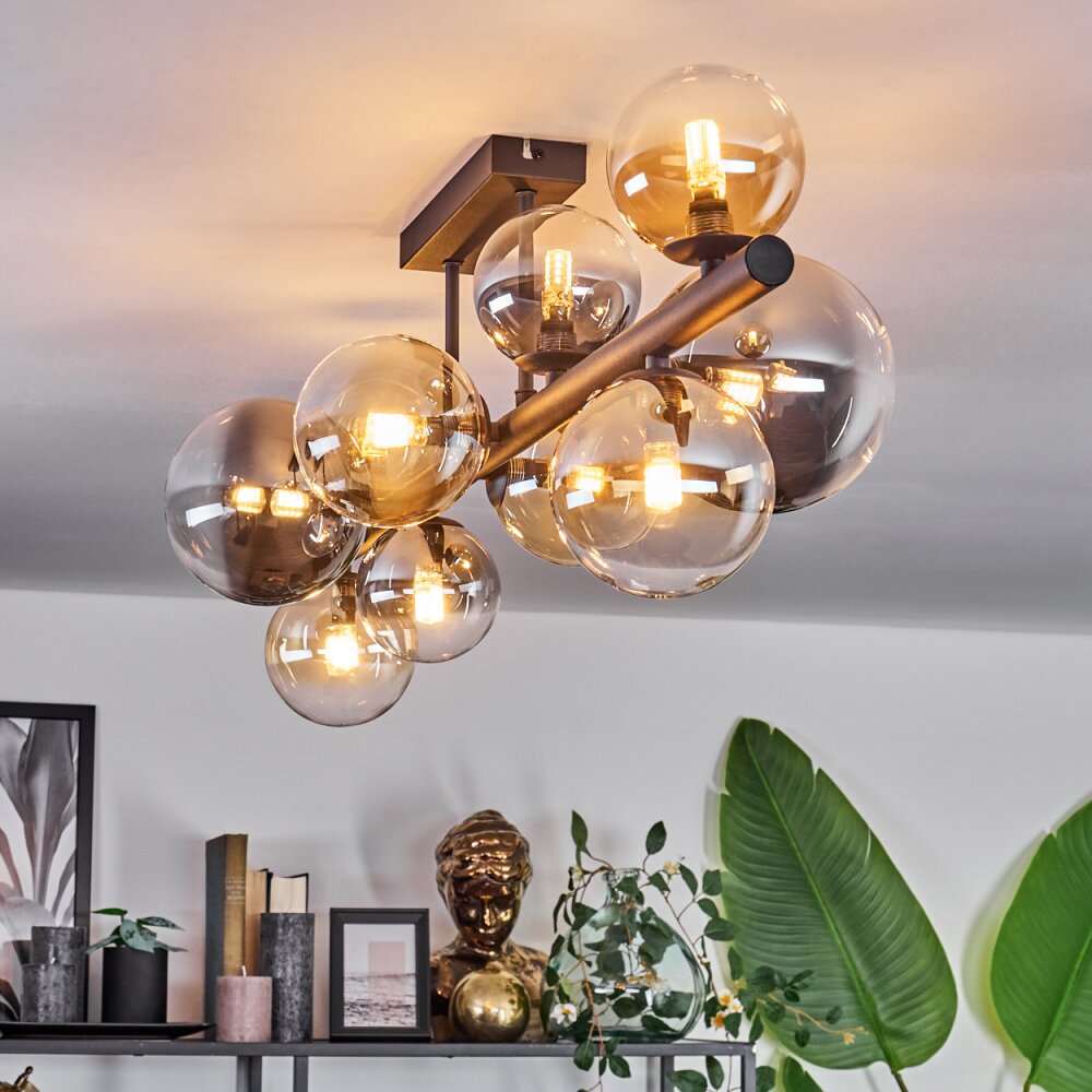 Chehalis Plafondlamp - Glas 10 cm, 12 cm, 15 cm Amber, Duidelijk, Rookkleurig, 10-lichts