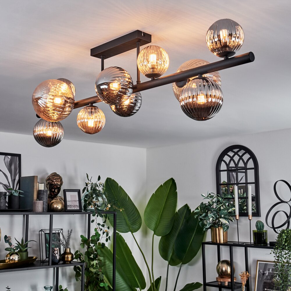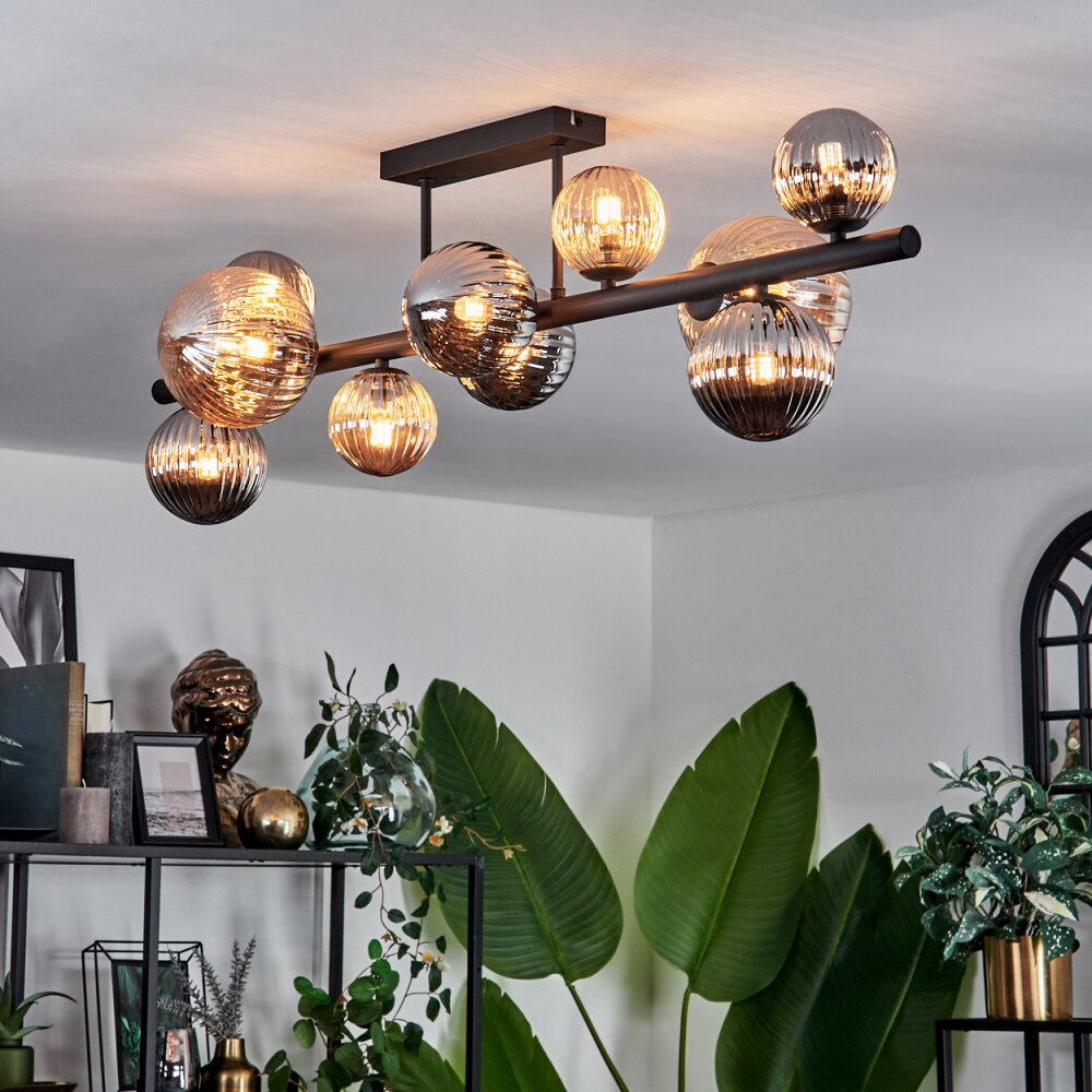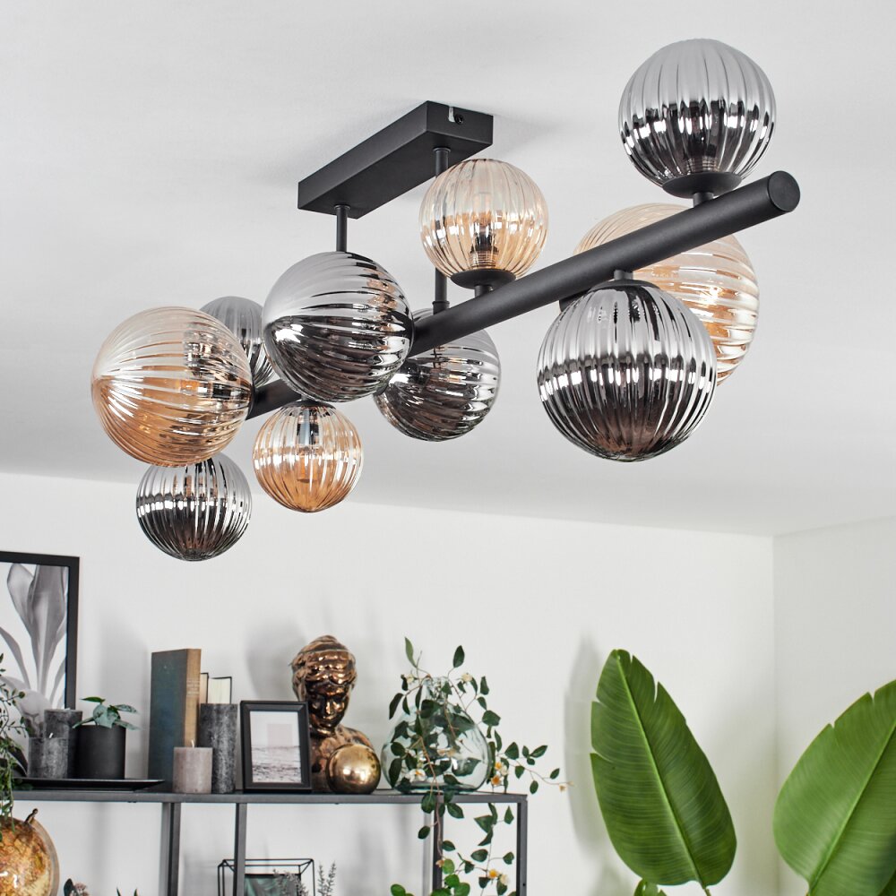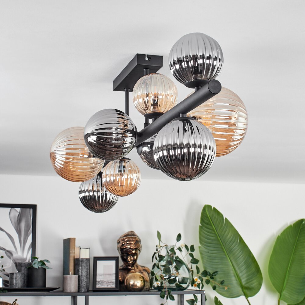 Chehalis Plafondlamp - Glas 10 cm, 12 cm, 15 cm Amber, Rookkleurig, 10-lichts