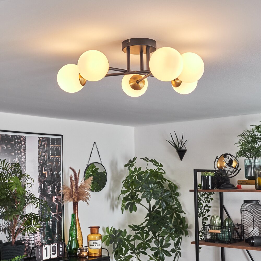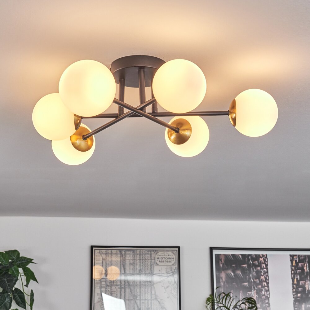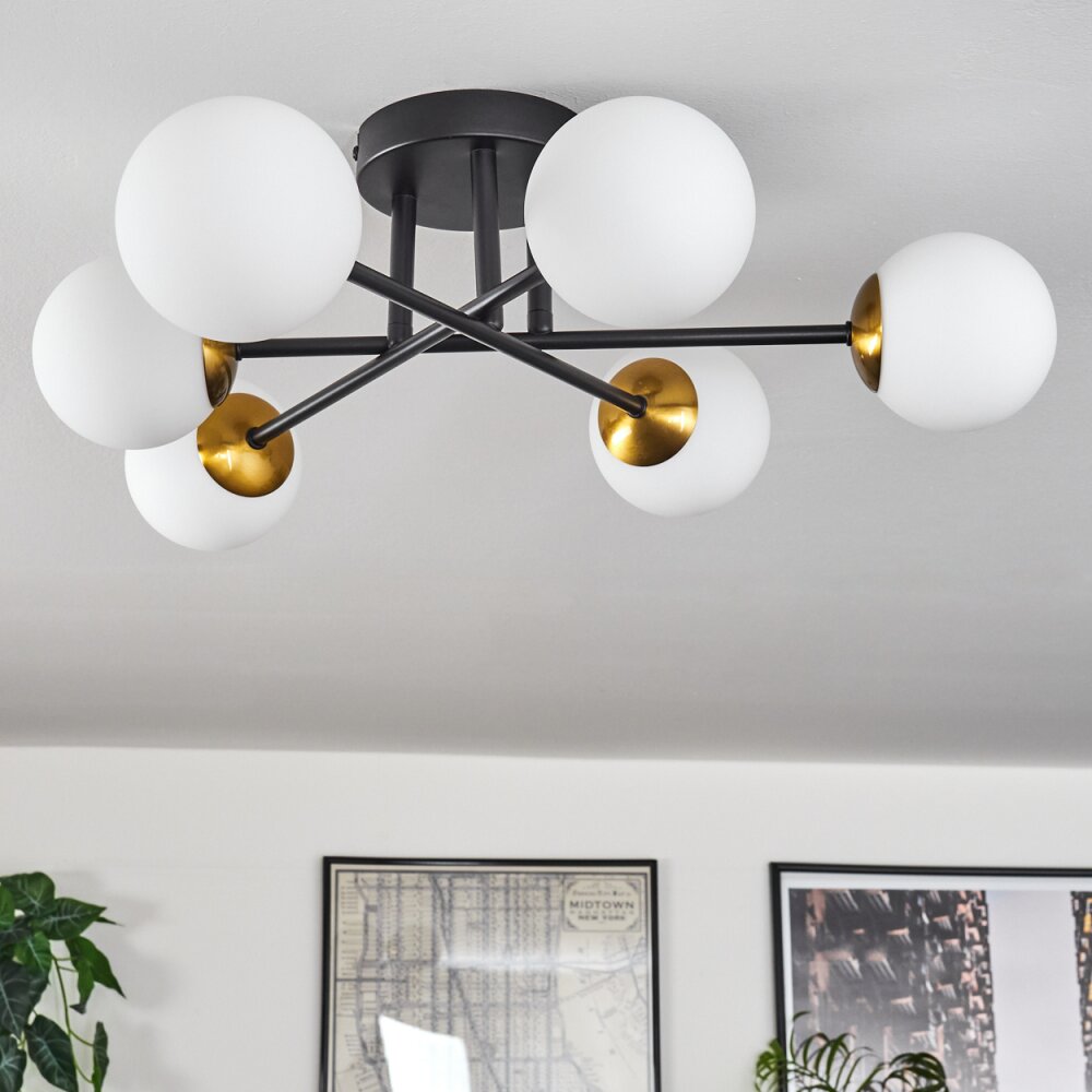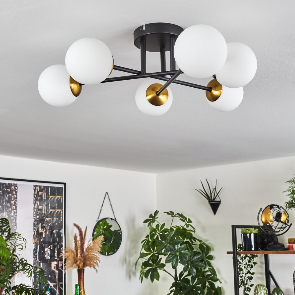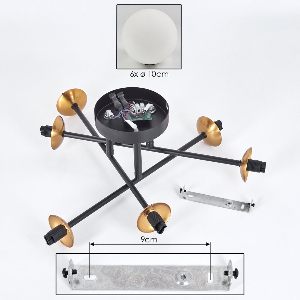 Chehalis Plafondlamp - Glas 10 cm Goud, Zwart, 6-lichts