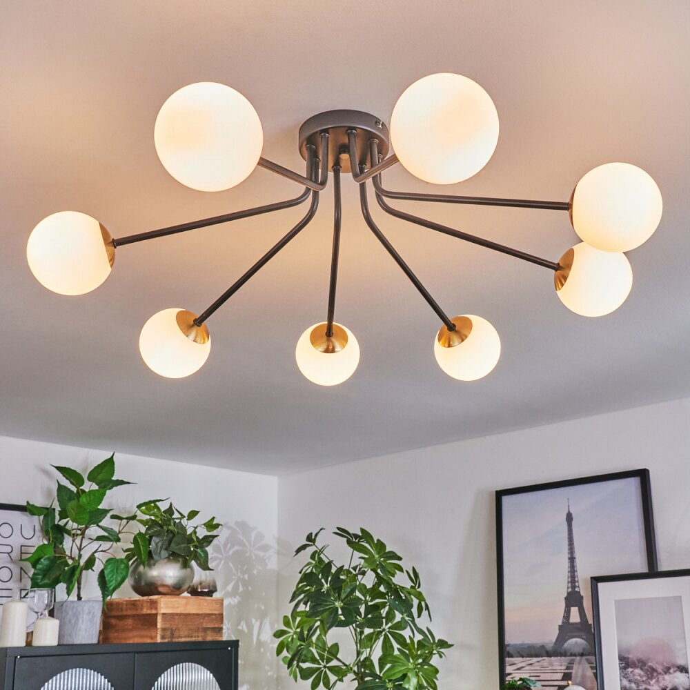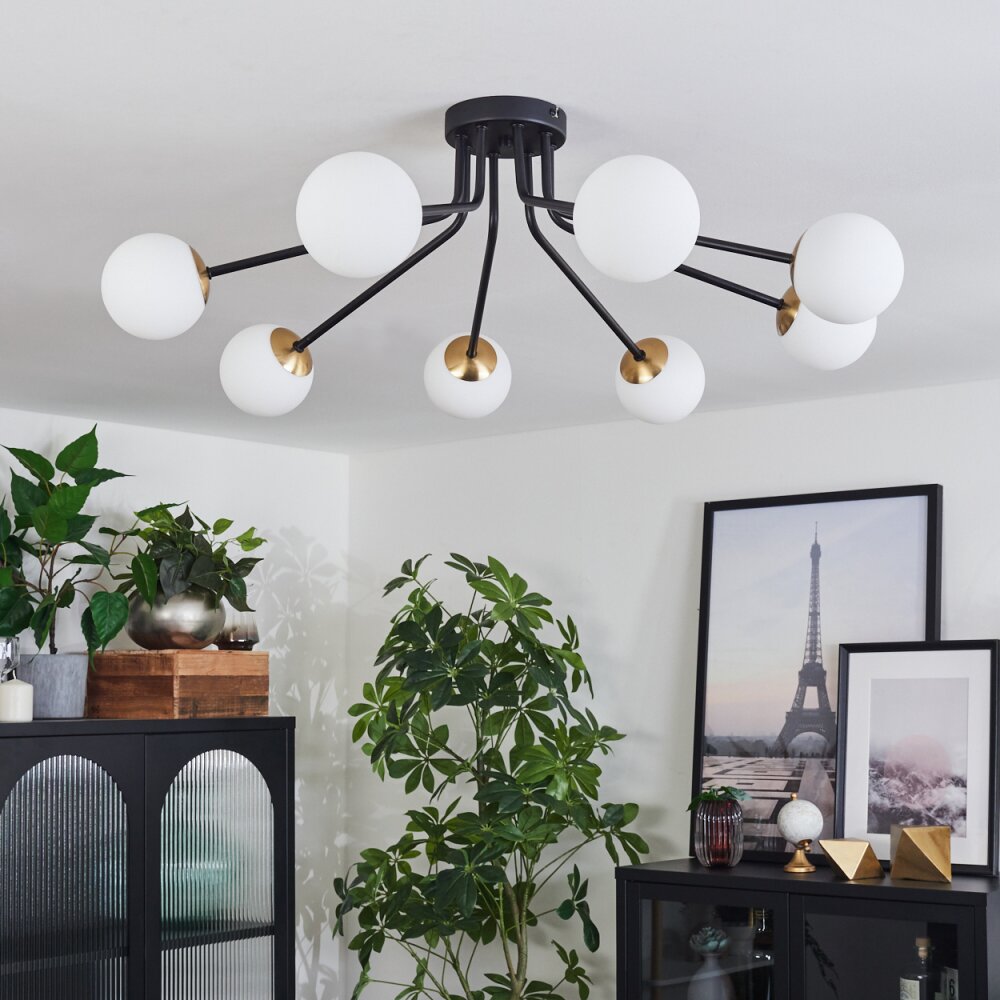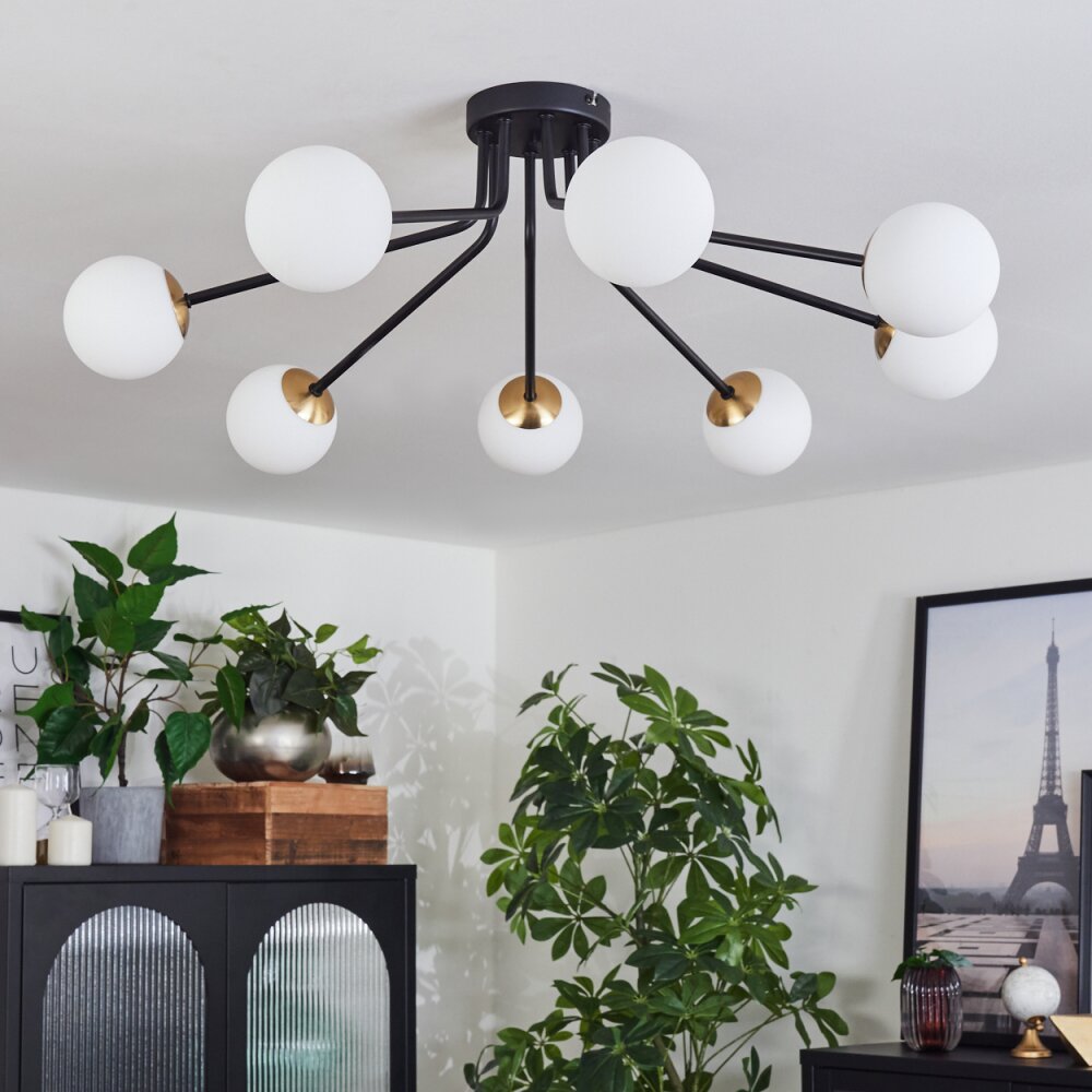 Chehalis Plafondlamp - Glas 10 cm Goud, Zwart, 8-lichts