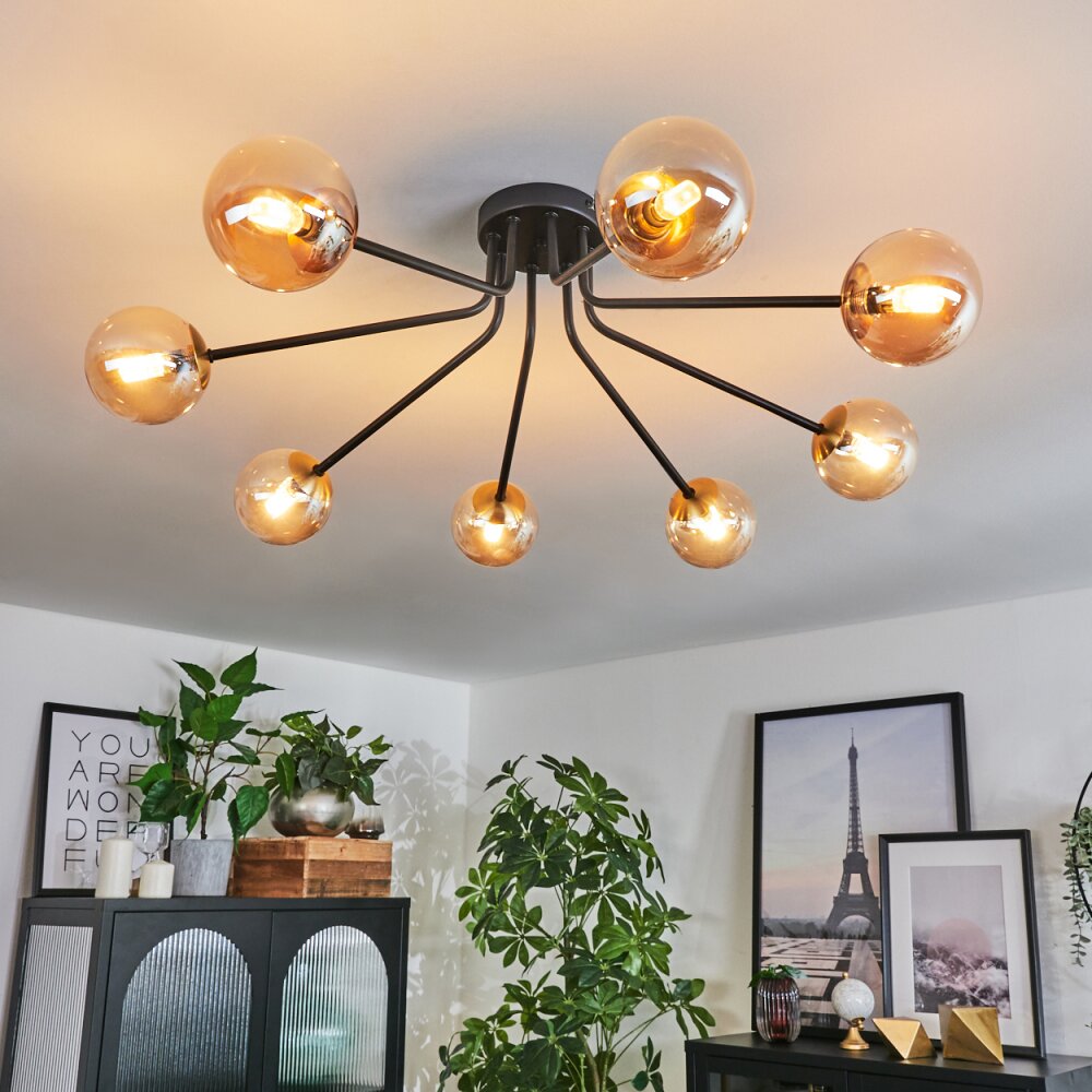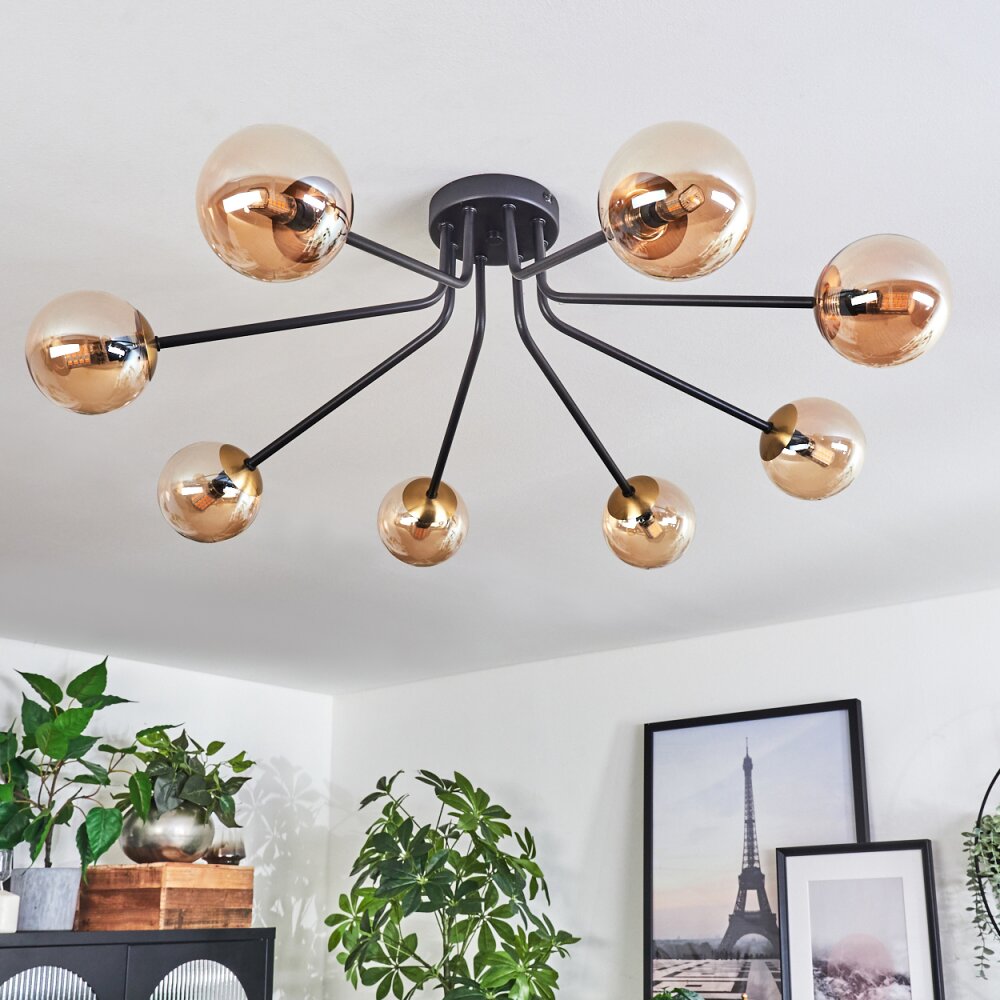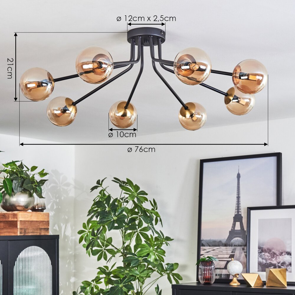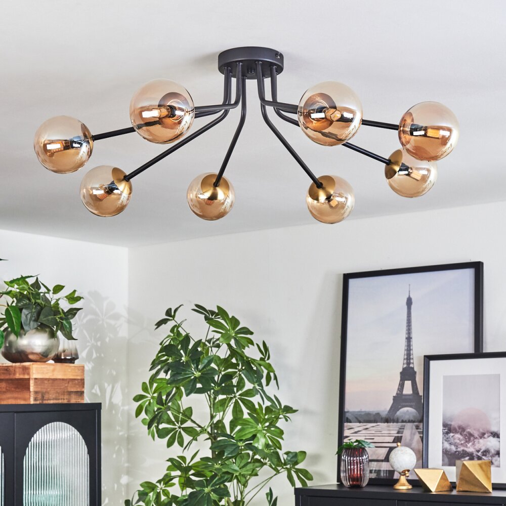 Chehalis Plafondlamp - Glas 10 cm Goud, Zwart, 8-lichts