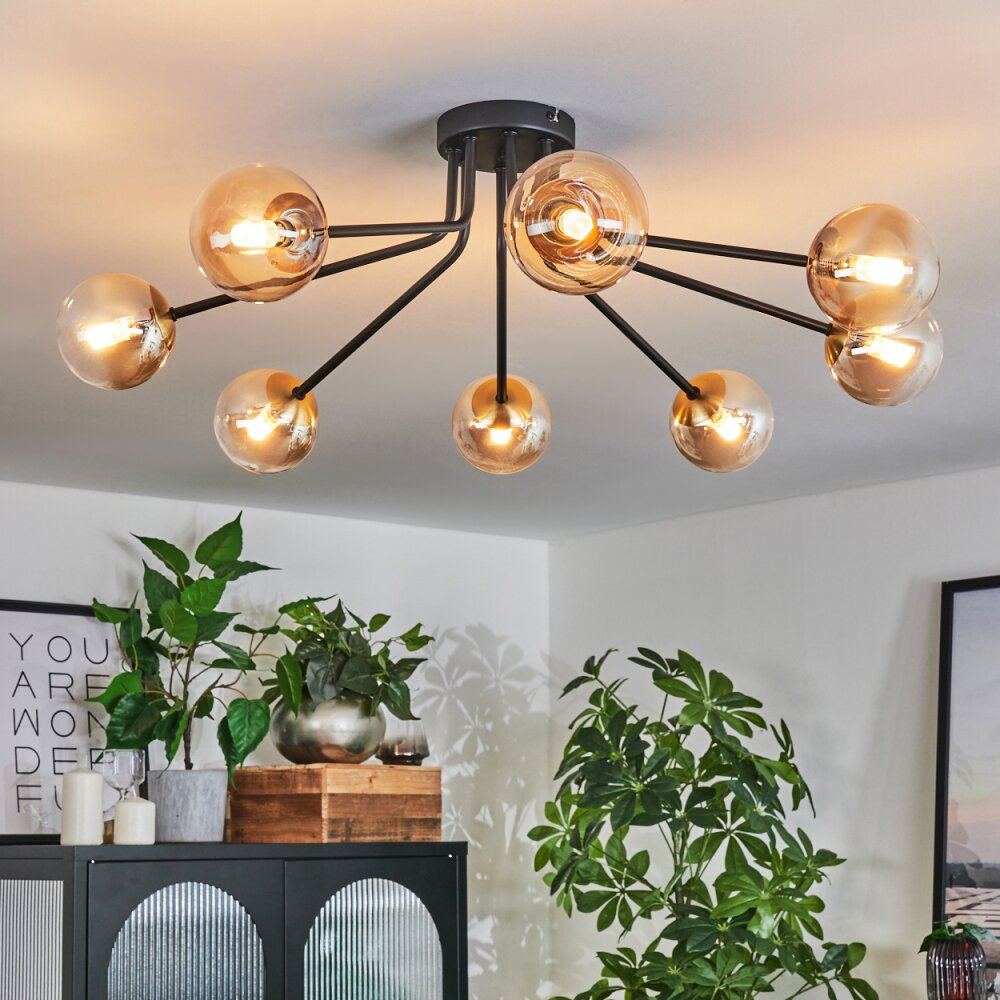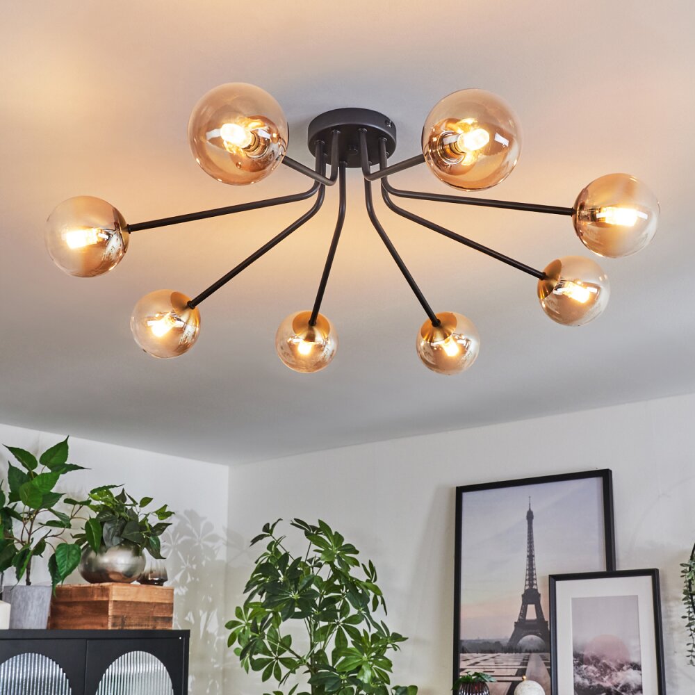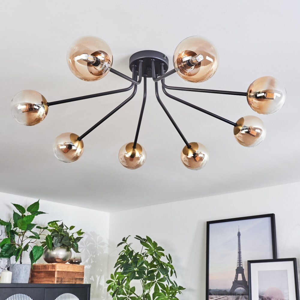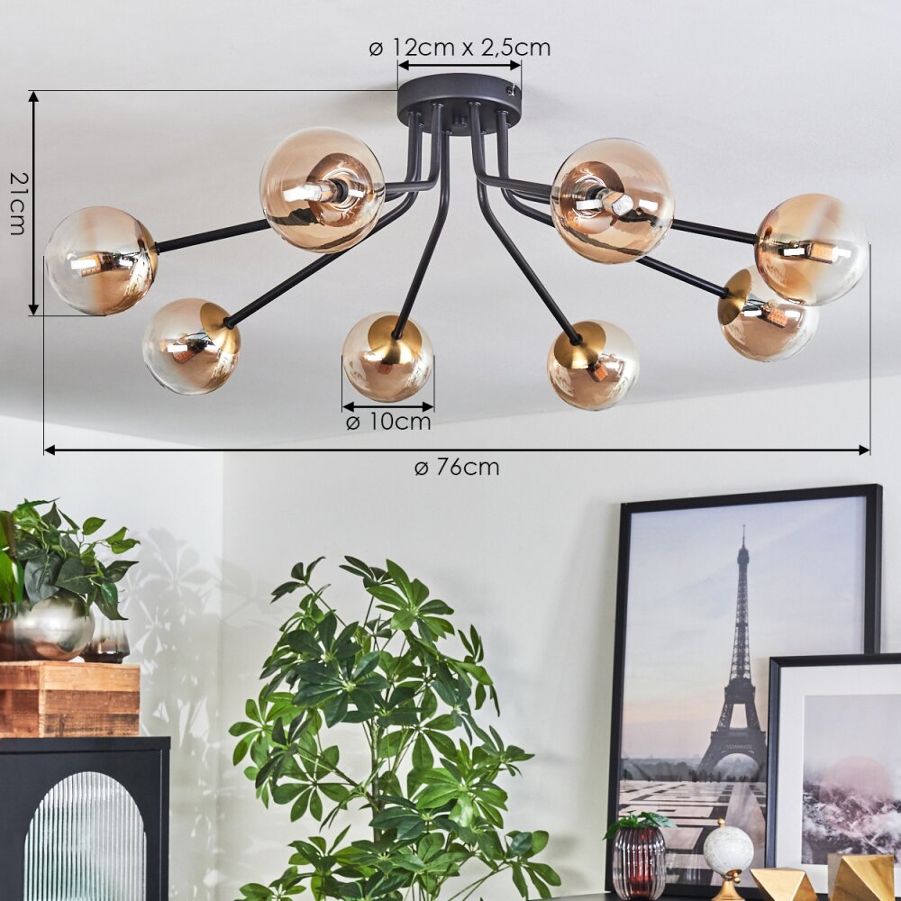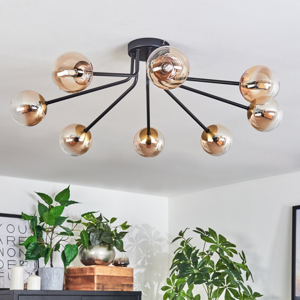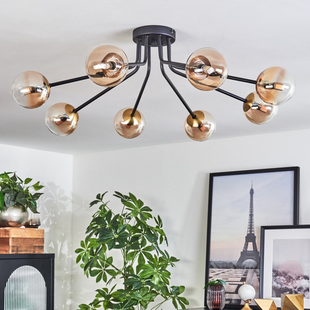 Chehalis Plafondlamp - Glas 10 cm Goud, Zwart, 8-lichts